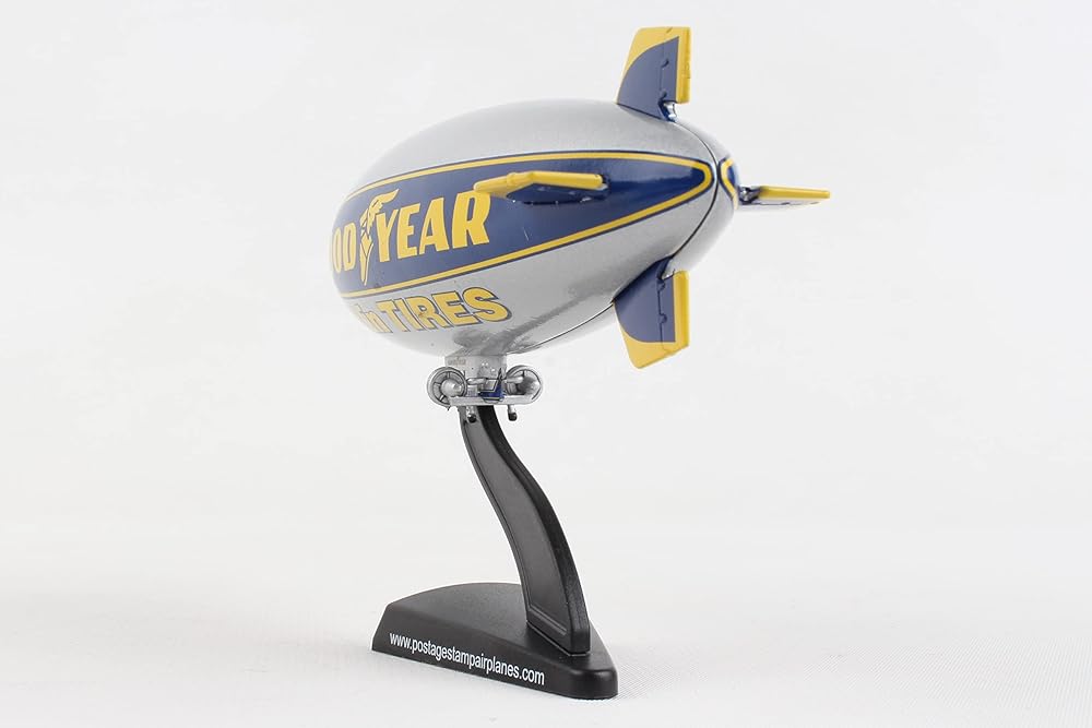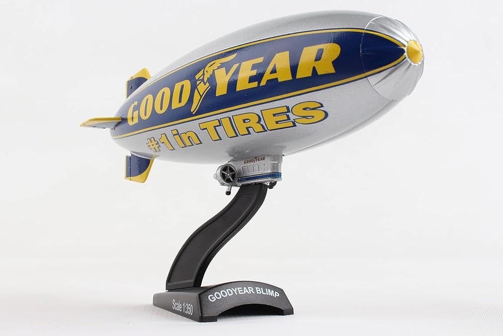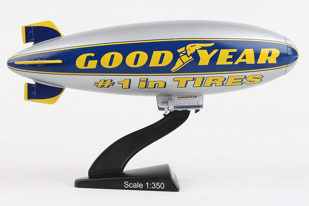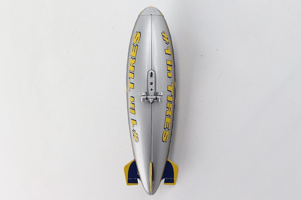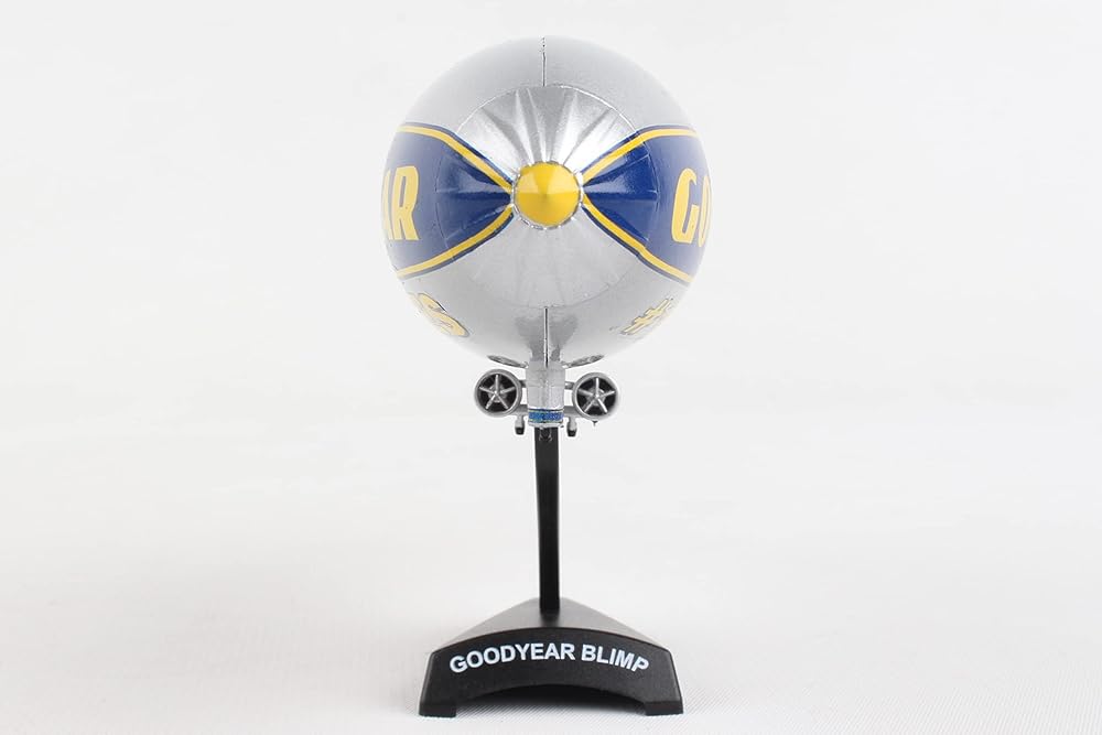 عندما تأسست شركة جوديير للإطارات والمطاط في عام 1898، كانت أمريكا تشعر بالتأثيرات الكاملة للثورة الصناعية. بالاستفادة من هذا الزخم والبحث عن طرق فريدة للتوسع خارج الإطارات، دخلت جوديير في مجال البالونات والطائرات الأخف من الهواء. أدى هذا في النهاية إلى إنشاء أحد أيقونات الشركات الأكثر ديمومة في أمريكا، وهو منطاد جود يير. تم استخدام المنطاد بشكل أساسي للإعلان والتقاط المناظر الجوية للأحداث الرياضية الحية على إيجل فيجن. وهذا يسمح للطائرة بعرض كلمات وصور متحركة ساطعة ومتعددة الألوان. بينما كانت جوديير تعمل في مجال المنطاد قبل بناء الحاج في عام 1925، إلا أنها تعتبر أول منطاد للعلاقات العامة للشركة. شهد عام 2015 العام التسعين من التشغيل المستمر لبرنامج جوديير للطائرة، وهو الأطول في التاريخ وبالتأكيد الأكثر نجاحًا. تأتي هذه الطائرة المعدنية المصبوبة PS5411-1 بمقياس 1: 350 مع حامل بلاستيكي ويبلغ طولها حوالي 5 1/2 انش وعرضها 1 1/2 انش.