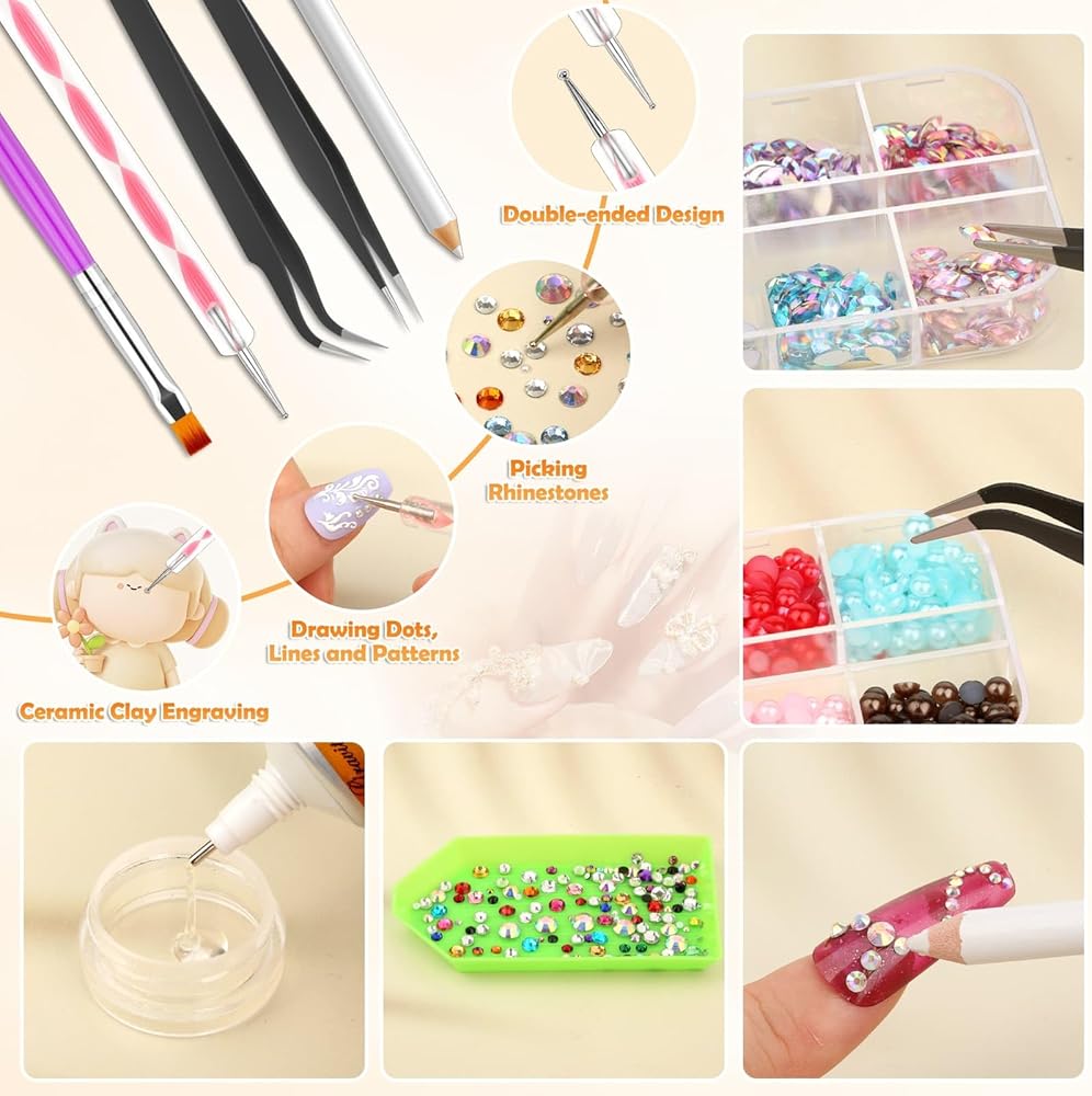 【أدوات مفيدة للصناعة】 يأتي الغراء الشفاف لحجر الراين مع أدوات مفيدة لربط أفضل، قلم حجر الراين فعال في التقاط الأحجار الكريمة واللؤلؤ وأحجار الراين، ويمكن للملقط التقاط حجر الراين كبير الحجم، وأداة تنقيط تساعد على التحكم في الغراء، ويمكن استخدامها أيضًا على طلاء الأظافر