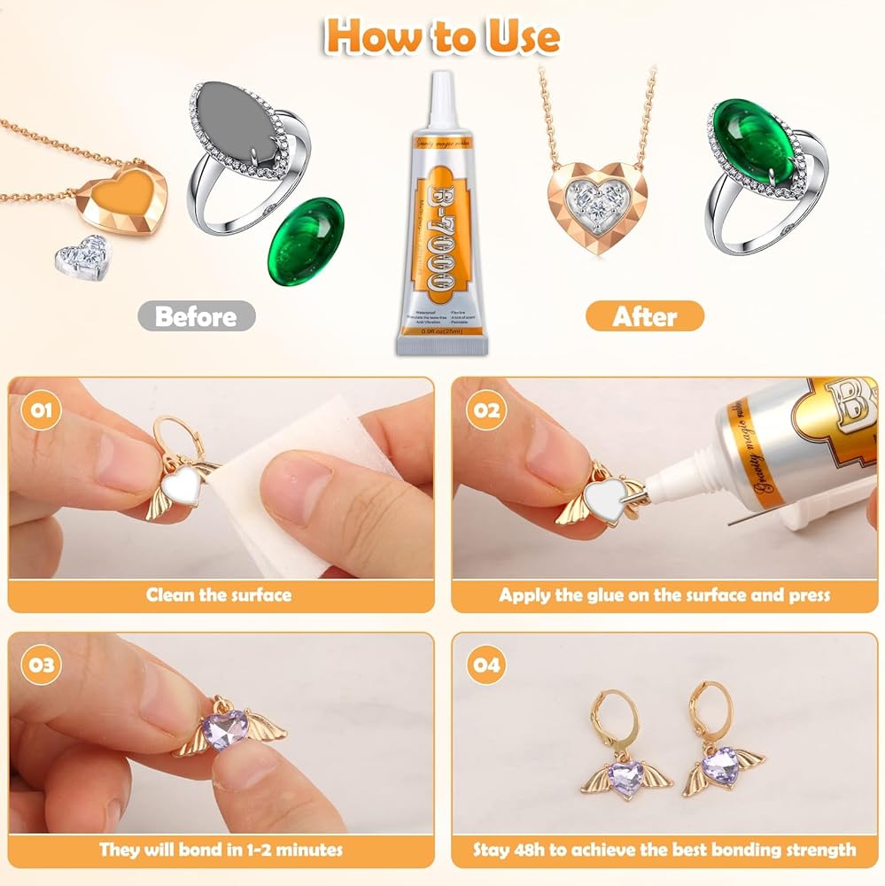 【جل صمغ فائق للحرف اليدوية】 غراء المجوهرات b7000 الخاص بنا مصنوع من مركب مطاطي لطيف عالي الجودة، عديم الرائحة، قوي، يتحمل الغسيل، يجف بشكل واضح، ولن يؤذي السطح، ليلتصق بأسطح أكثر من الفورية الفائقة. صمغ. وقت تجفيف اللاصق B-7000 بطيء الجفاف هو 6-10 دقائق، مما يوفر لك وقتًا كافيًا لوضع أحجار الراين عليه. سيتم معالجة الغراء تمامًا بعد 24 ساعة.