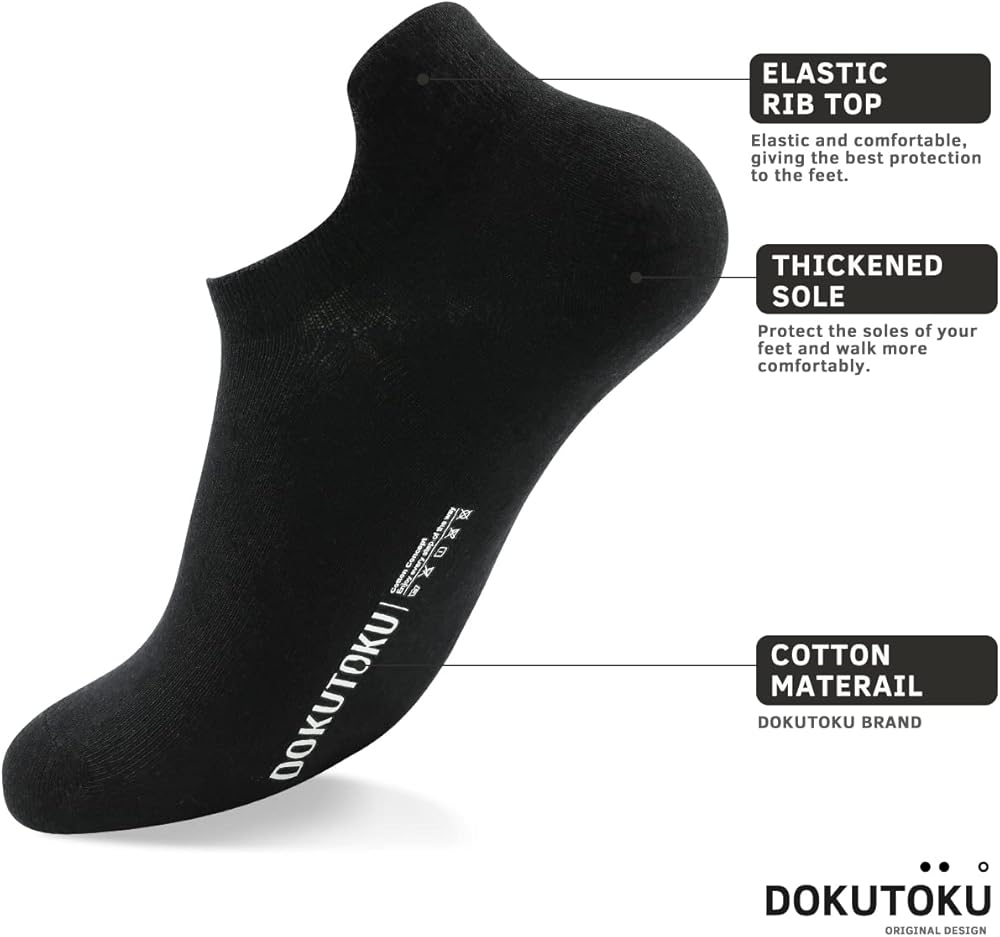 【جوارب مسامية بدون عرض للرجال】جوارب DOKUTOKU منخفضة القطع مع نفاذية الهواء وأداء ممتص للرطوبة، القطن الفاخر يوفر جواربنا الرياضية مريحة ومسامية. ستحافظ جوارب الجري هذه للرجال على قدميك جافة ومرتاحة أثناء الجري أو التدريبات.