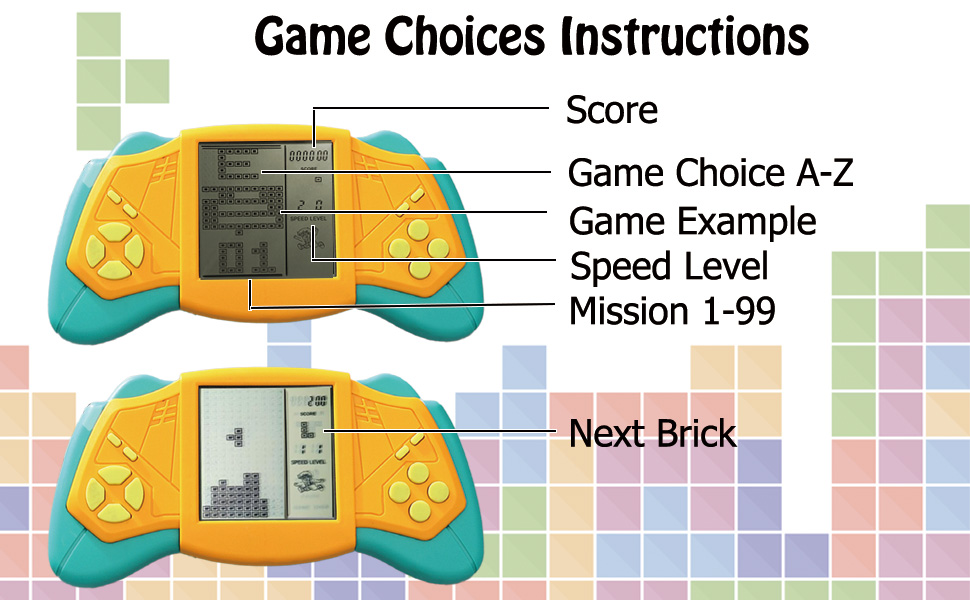 ✅ ما بعد البيع: نحن ندعم جودة لعبتنا المحمولة بالطوب. إذا واجهت أي مشاكل في غضون 90 يومًا من استلام المنتج، فلا تتردد في الاتصال بنا. نقدم خدمات الاستبدال واسترداد الأموال. ملاحظة: لحماية الشاشة، يوجد طبقة واقية شفافة عليها. يمكنك تثبيته بشريط لاصق وإزالته للحصول على تجربة لعب فائقة الوضوح.