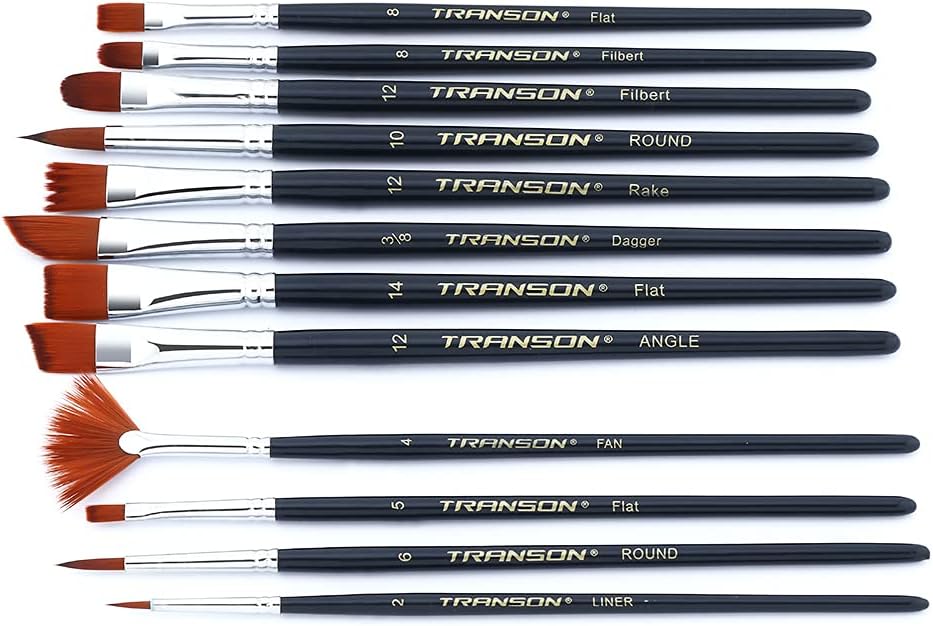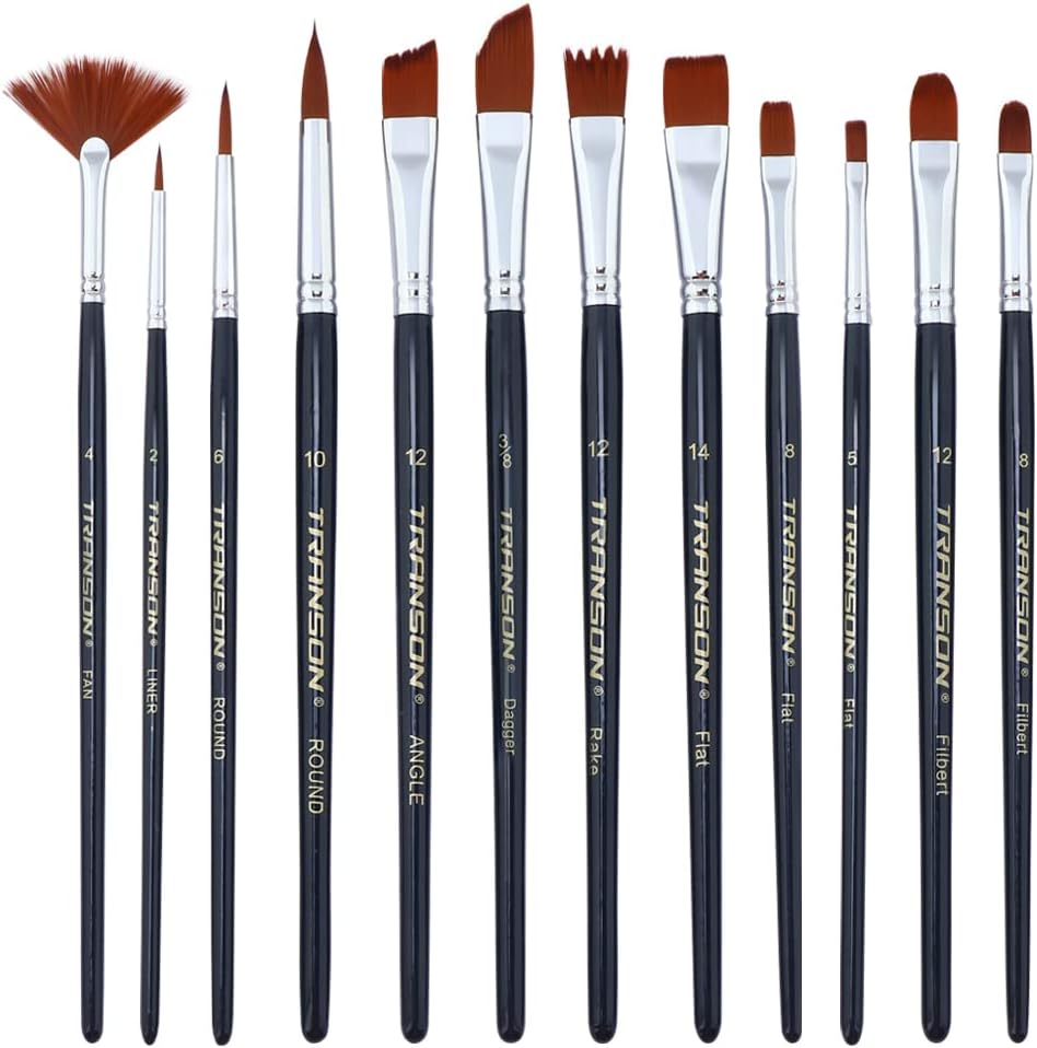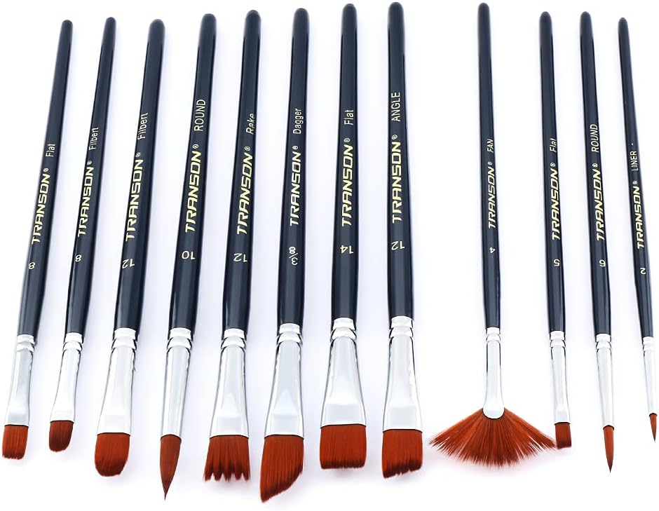 Transon 12 pieces of premium nylon paint brush set.