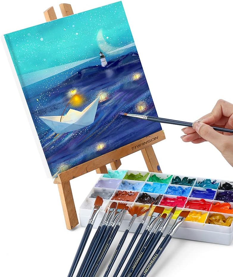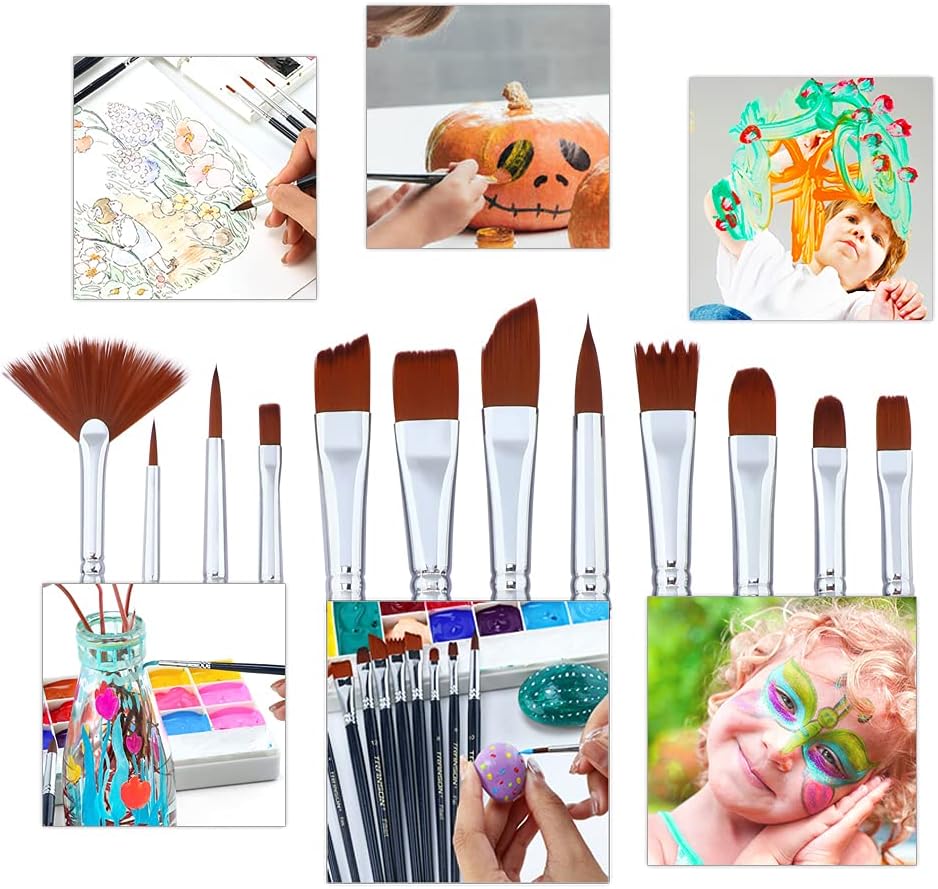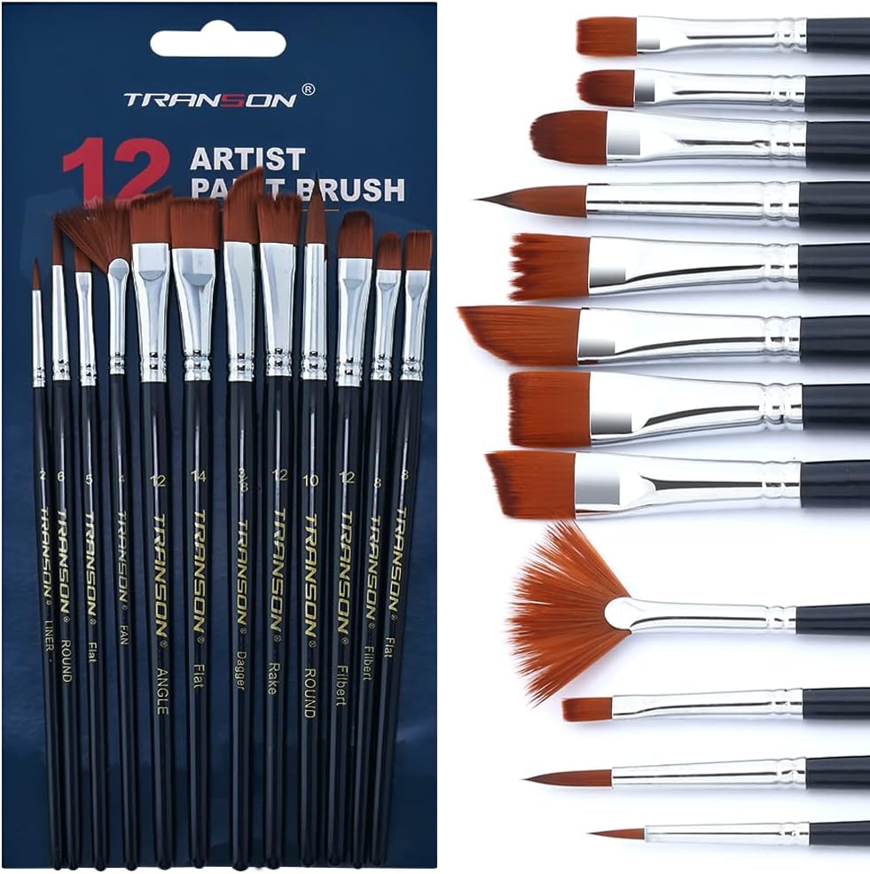 Transon Professional Artist Painting Brush Set 12pcs Versatile for Acrylic Watercolor Gouache and oil
