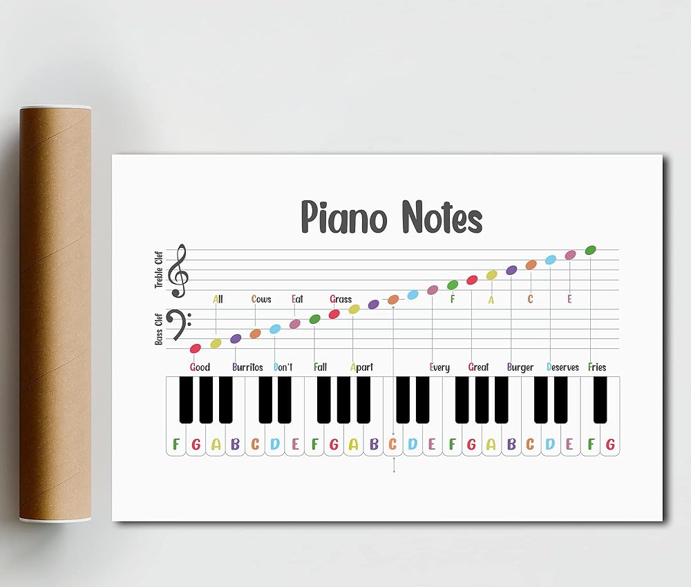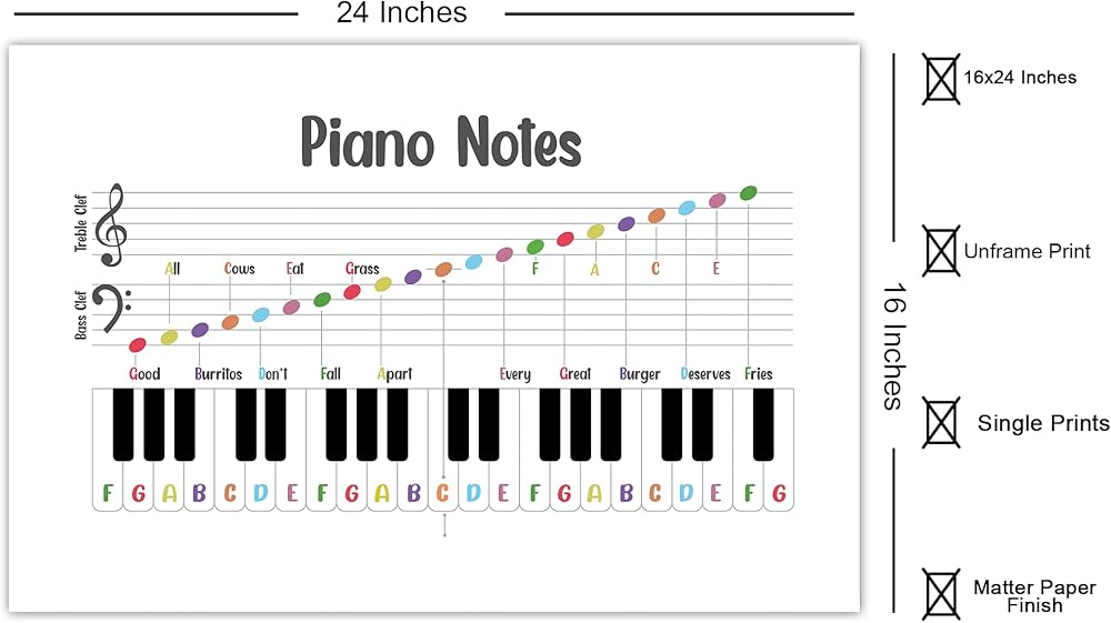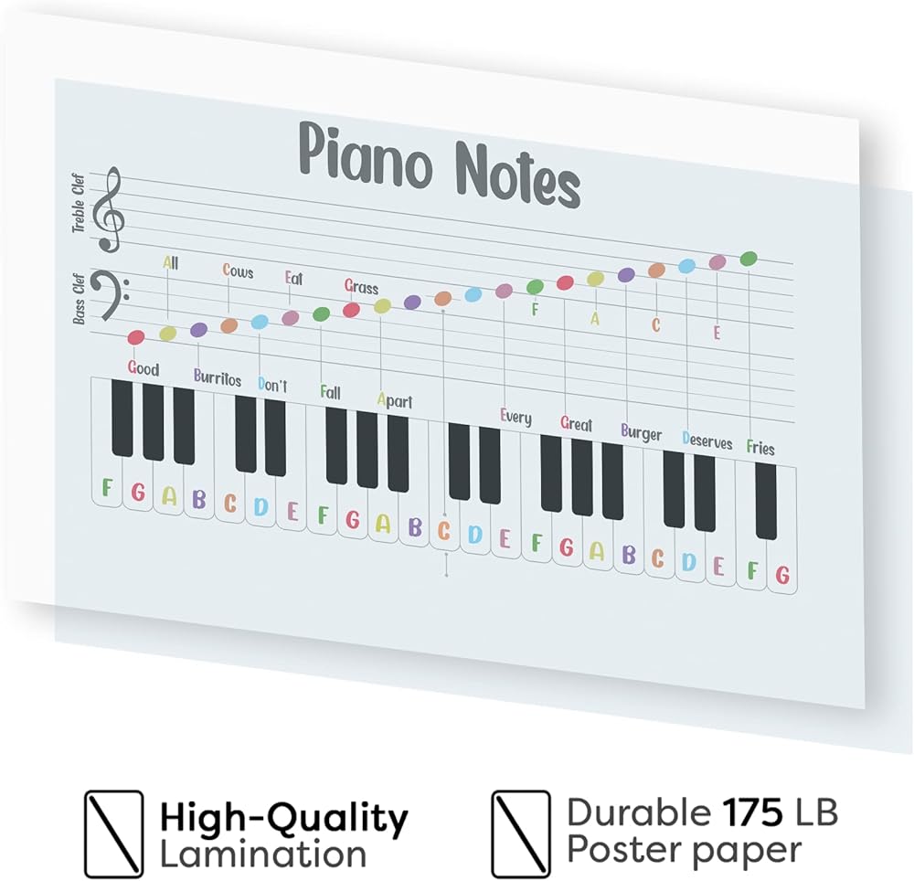 ✅ ابدأ شغفك بالموسيقى مع ملصق ملاحظات البيانو. تعلم كيفية العزف على البيانو من الأساسي إلى التقدم معنا. بعض النصائح لتذكر كليف تريبل وباس كليف. علاوة على ذلك، لا تطبع نوتات موسيقى البيانو لتزيين فصل الموسيقى فحسب، بل أيضًا لمساعدتك على مراجعة نظرية الموسيقى.