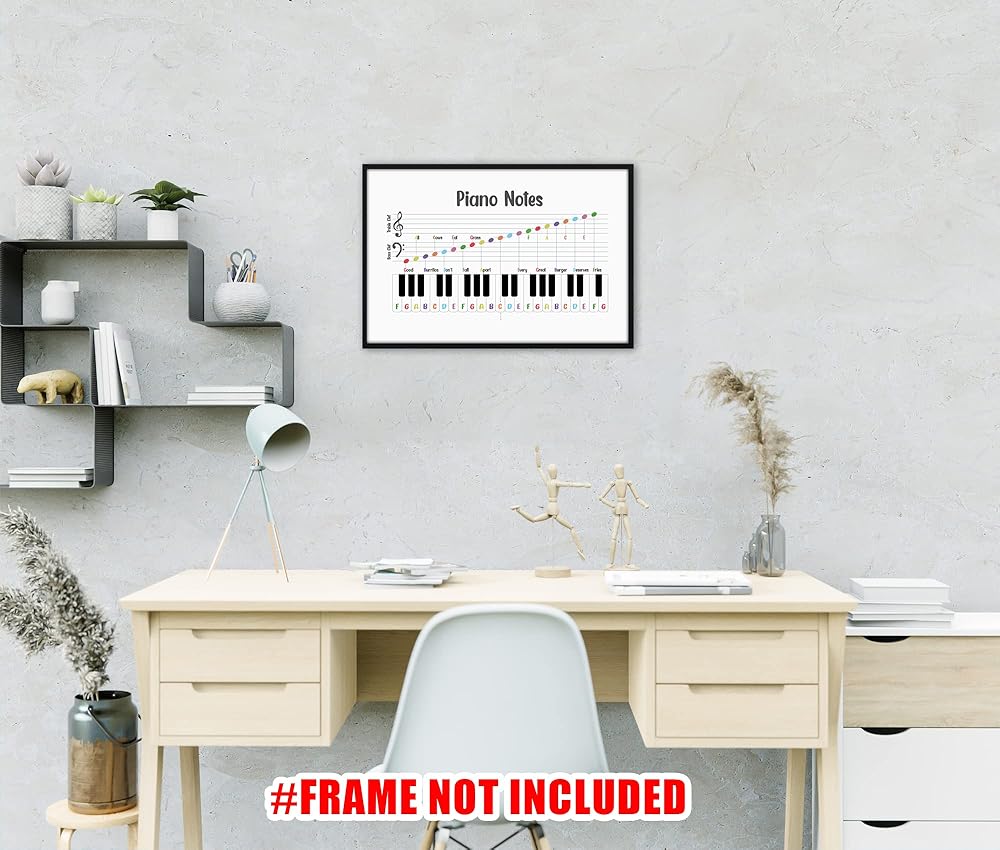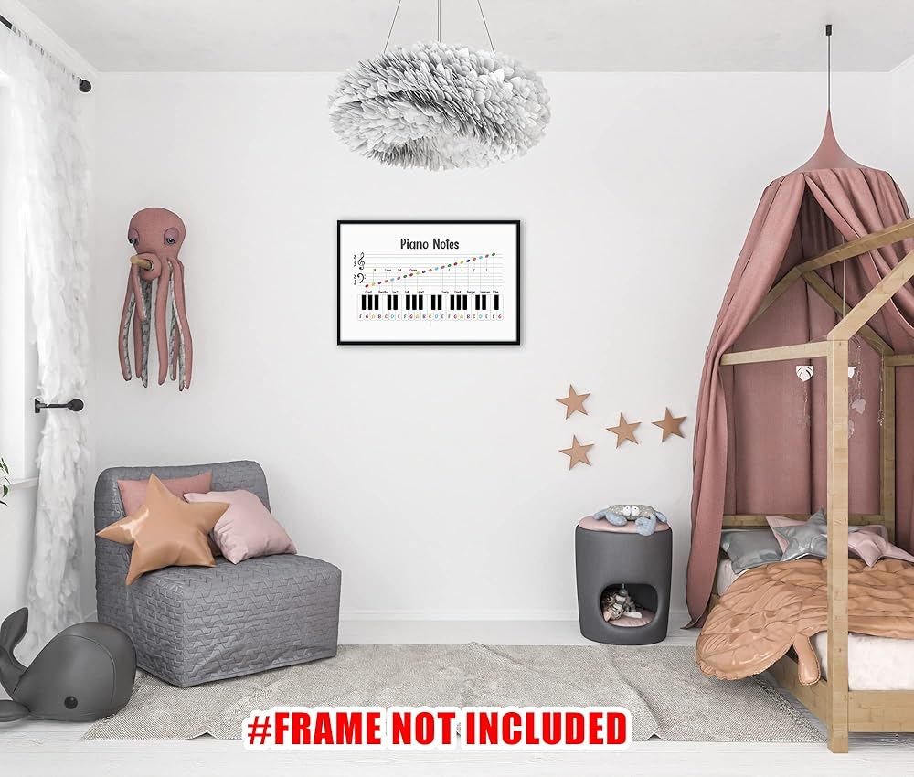 ملصق نوتات موسيقية بيانو بدون اطار من تيفوك مقاس 24 × 16، تعليم الموسيقى، قيمة النوتة الموسيقية، ملصقات مفاتيح البيانو للفصول الدراسية للموسيقى، ملصق نظرية الموسيقى، ملصق مونتيسوري، غرفة البيانو