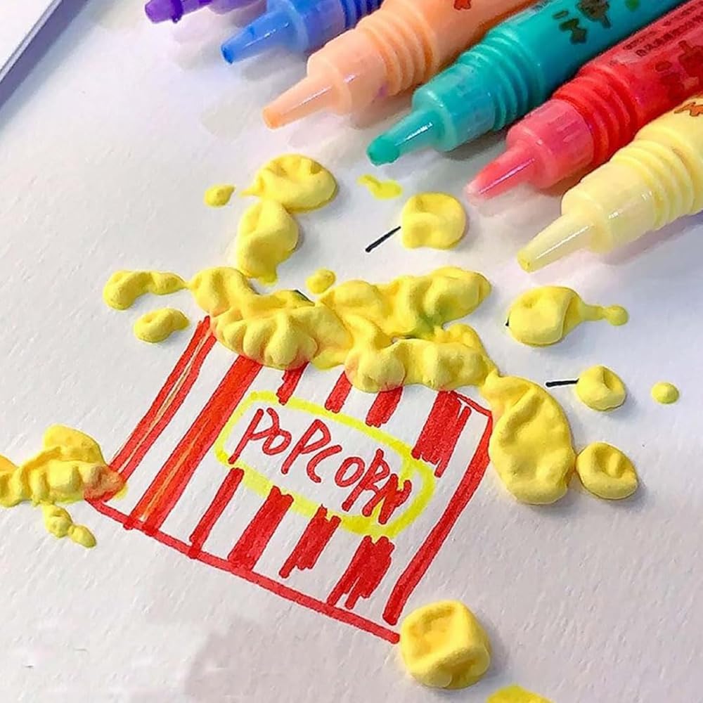 【Magic Puffy Effect】DIY Bubble Popcorn Drawing Pens, Simply draw & dry it with a blower or heater!