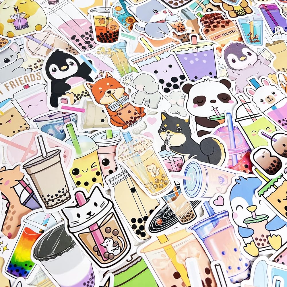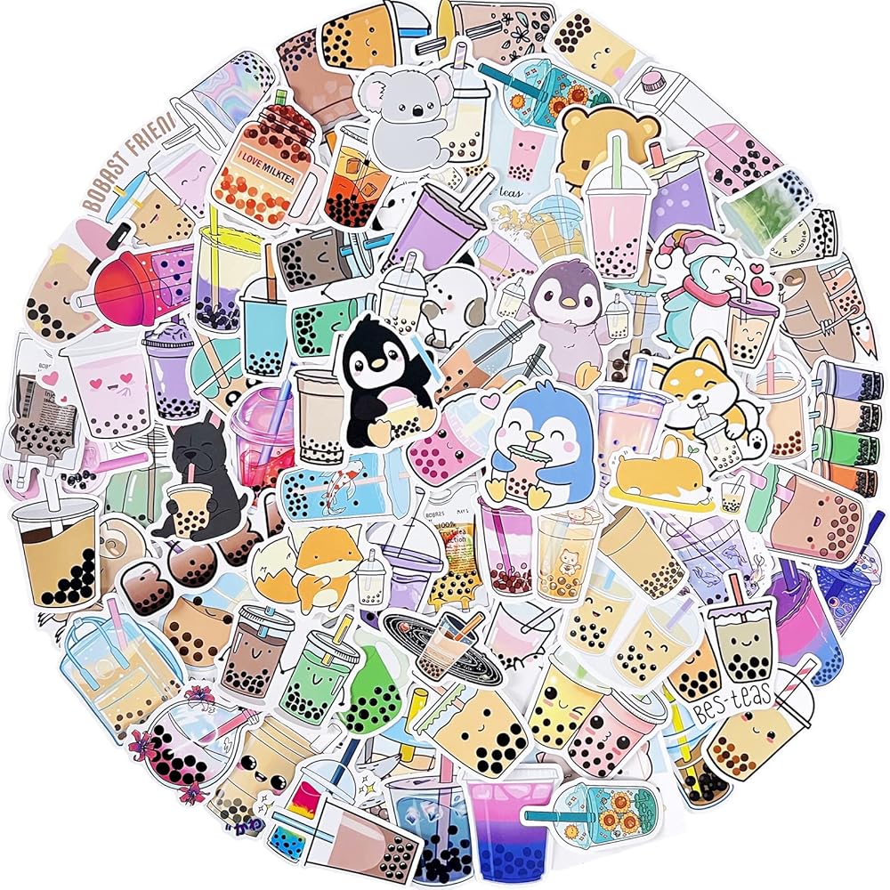 اوبالك 200 قطعة من ملصقات بوبا اللطيفة لزجاجات المياه كاواي بوبا الاشياء للاطفال والمراهقين