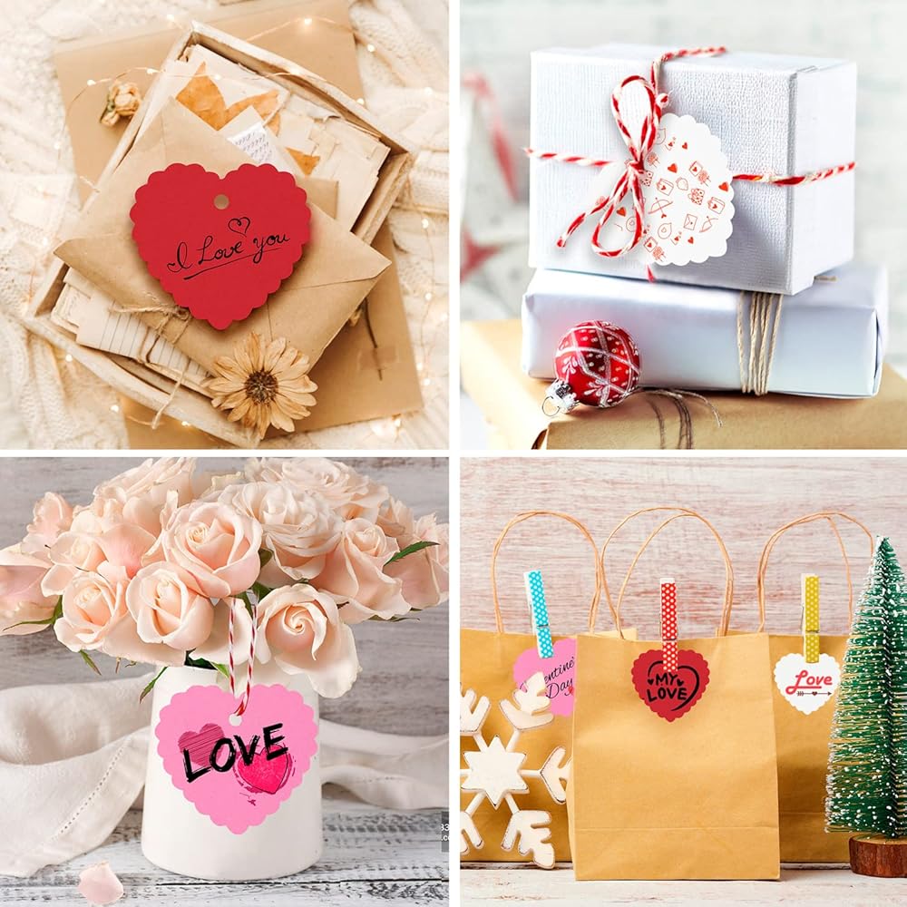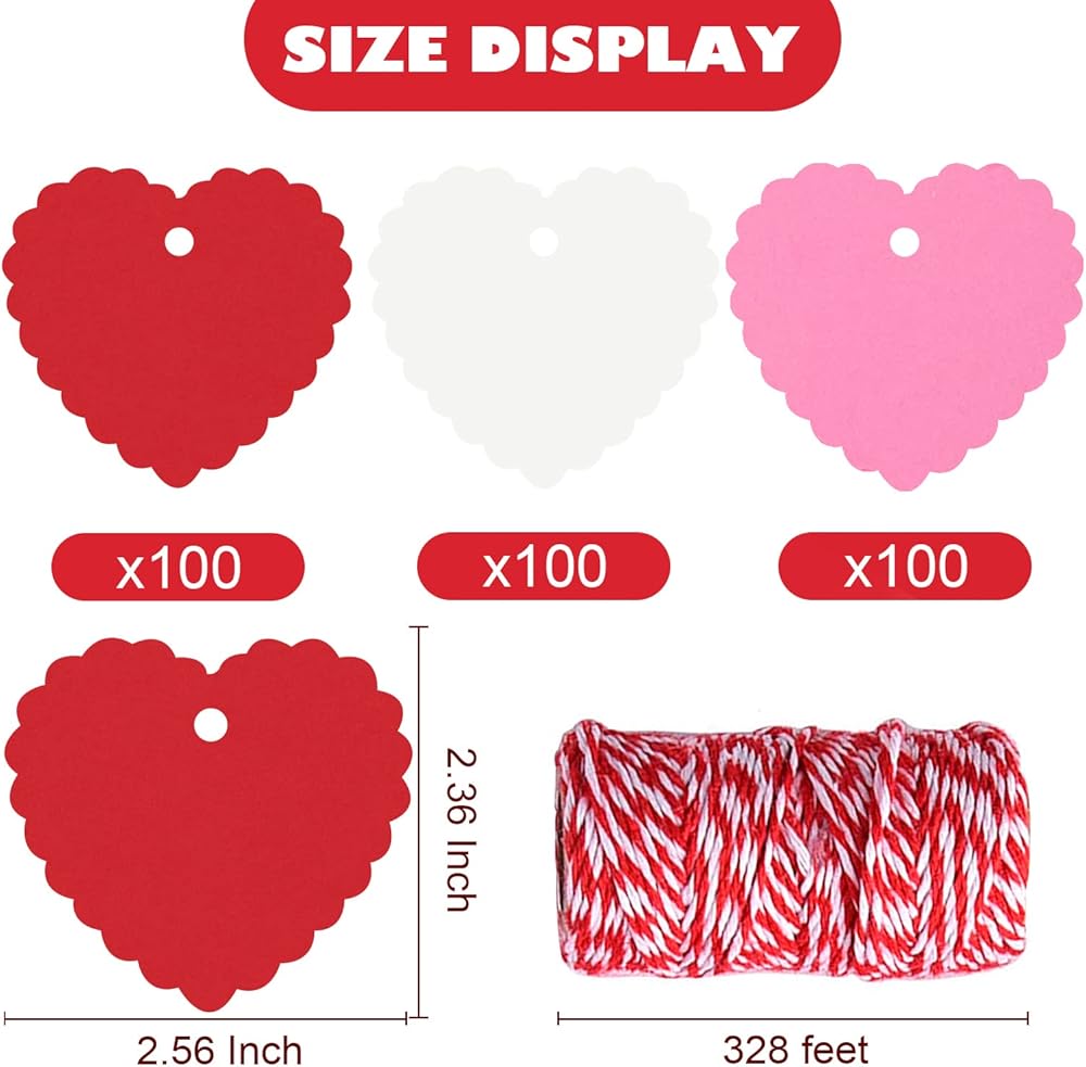 • تتضمن العبوة - 300 قطعة من بطاقات الهدايا الورقية لعيد الحب وخيوط حمراء بيضاء بطول 322 قدم.