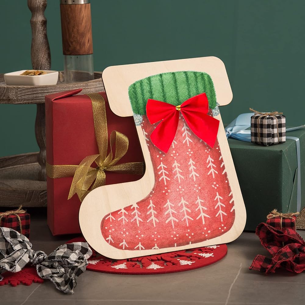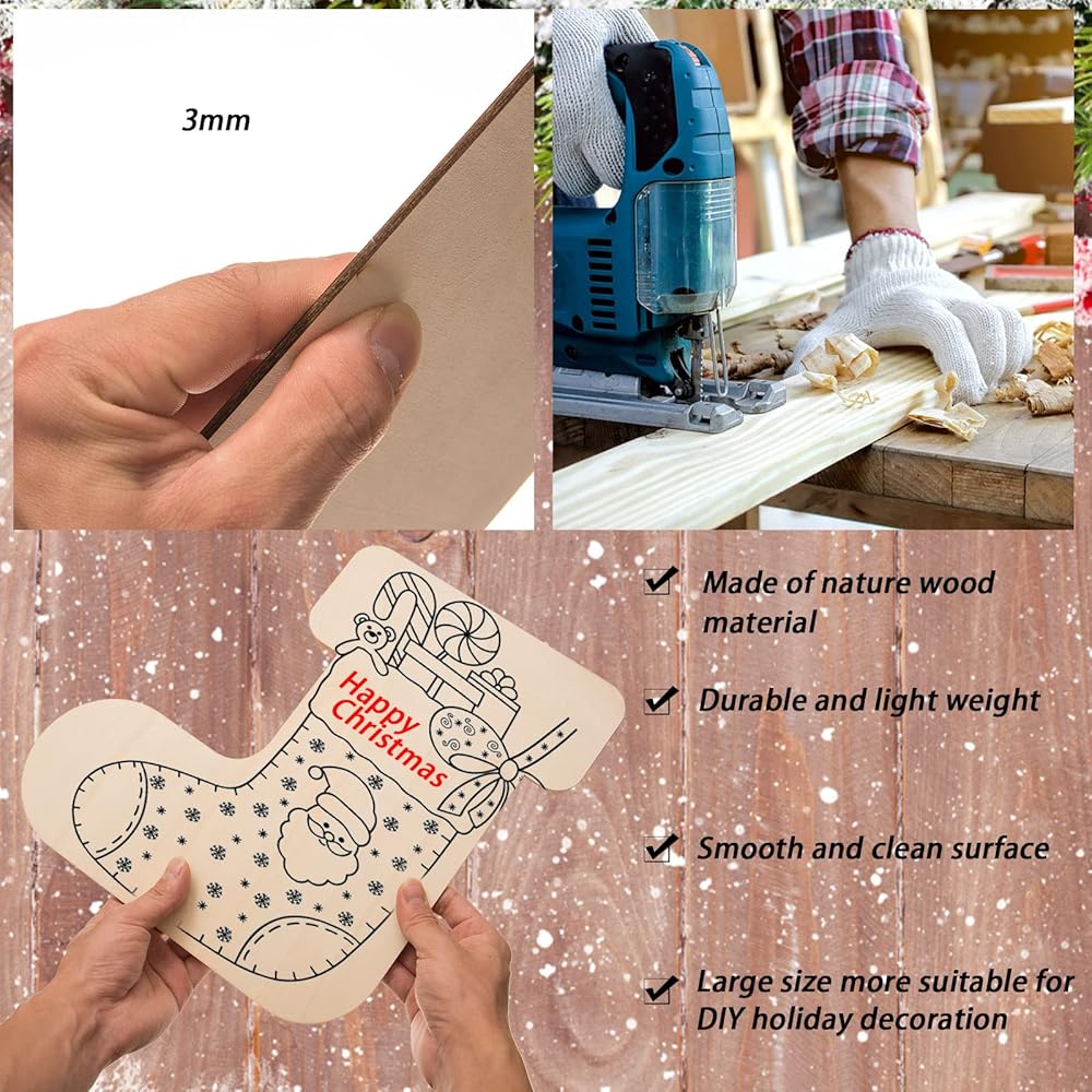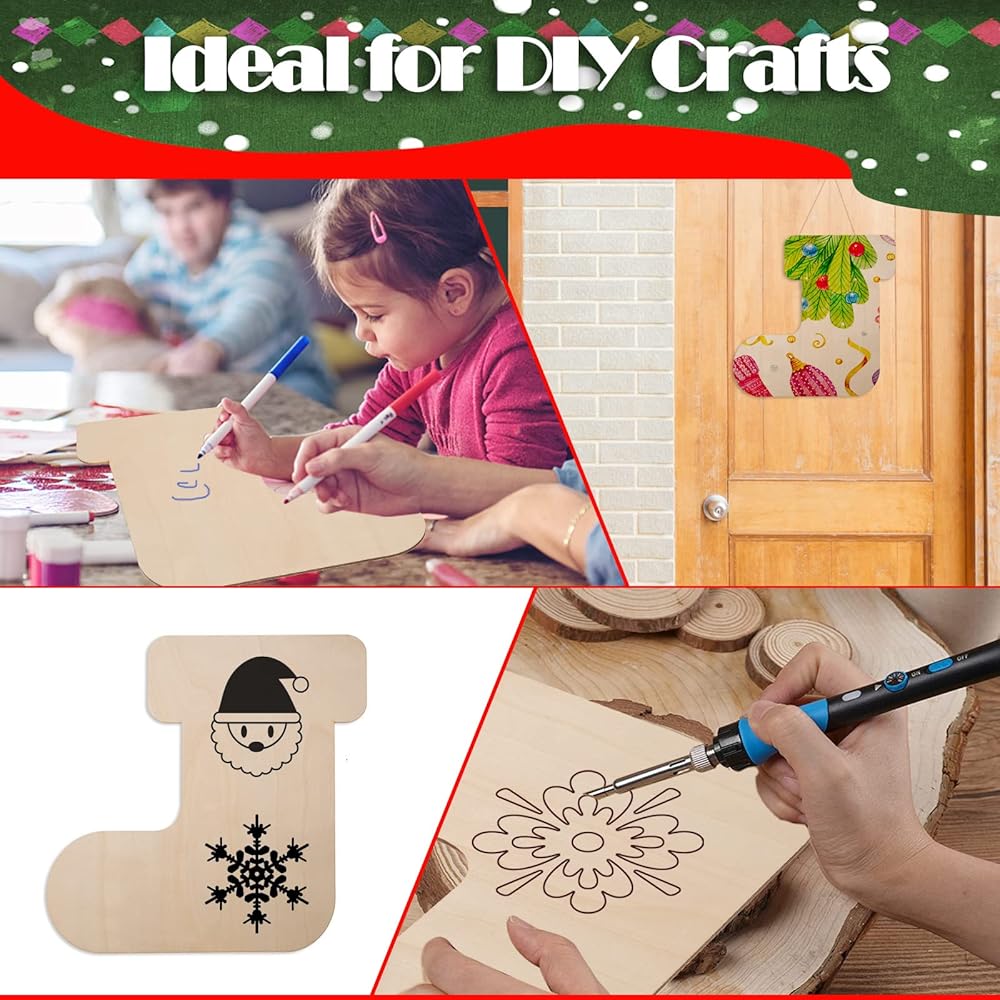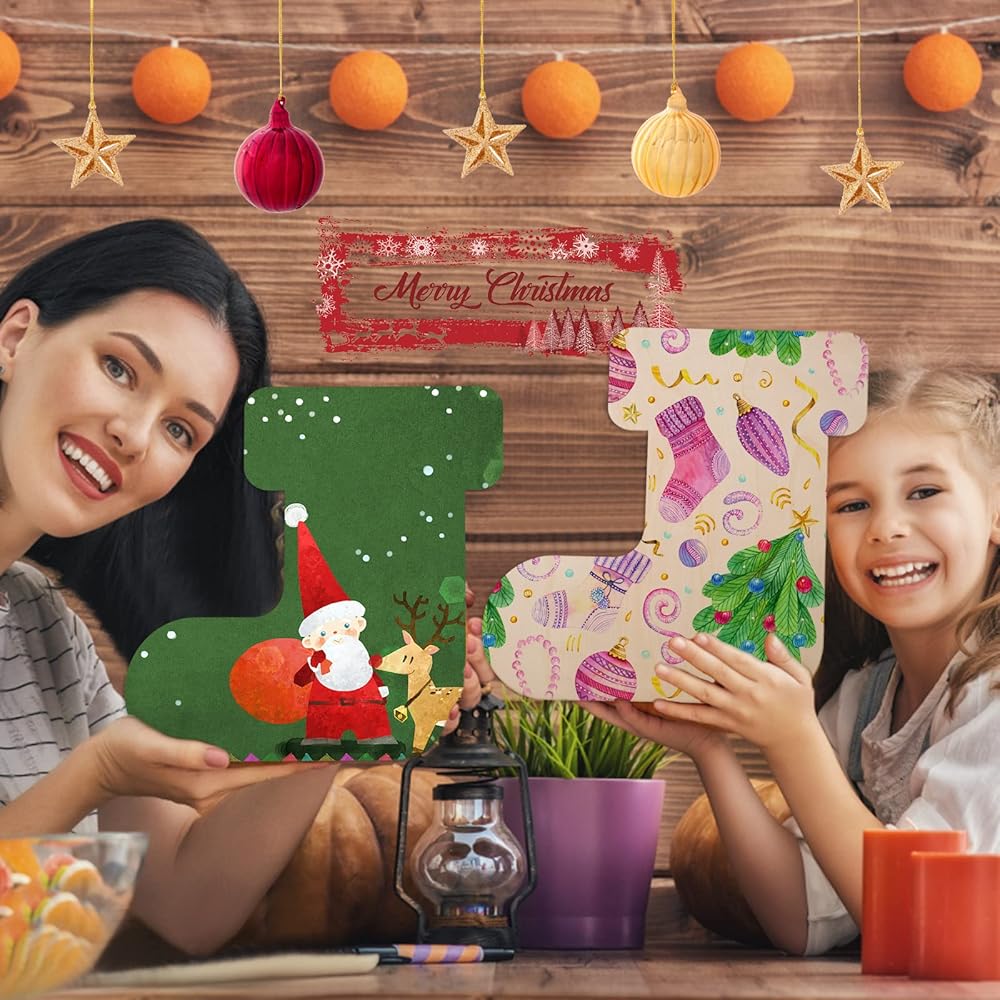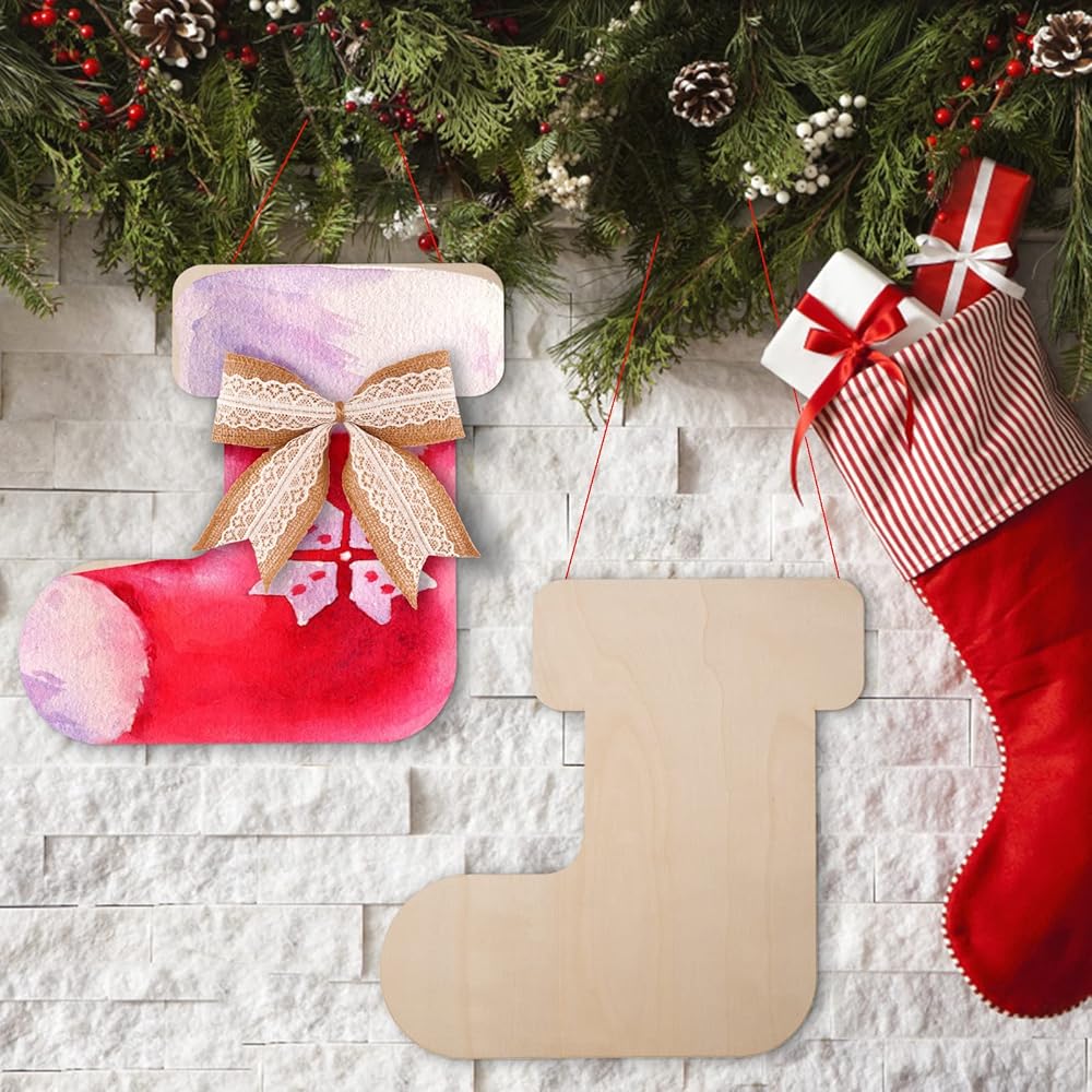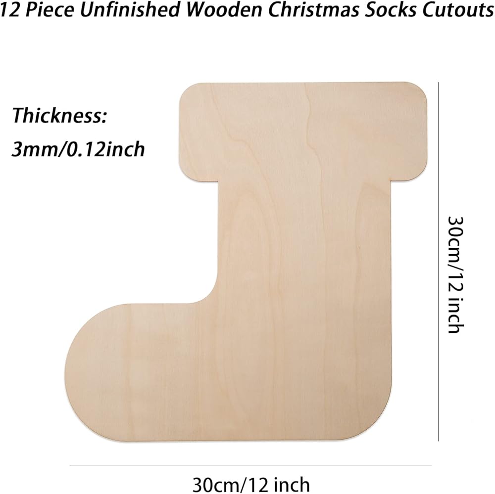 12 عبوة من جوارب عيد الميلاد مقواة خشبية، مقاس 30.48 سم من الخشب غير المكتمل لعطلة عيد الميلاد مقطوعة من جوارب عيد الميلاد الفارغة على شكل زخارف خشبية لتزيين مستلزمات حفلات عيد الميلاد، ديكور مشغولات يدوية للأطفال