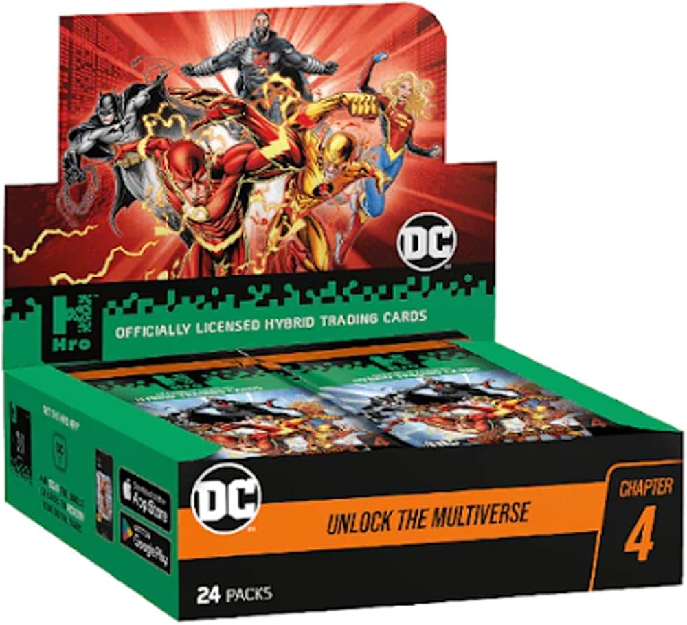 Hro DC Unlock The Multiverse Chapter 4 Hybrid Trading Cards - The “Chapter 4” Collection is an extraordinary showcase of breathtaking artwork of iconic Super Heroes and Super-Villains who have captivated fans across the ages…like The Flash, Batman, Wonder Woman and Harley Quinn. This 156-Card “Chapter 4” Collection introduces our rarest tier in any hybrid collection to date: The Hro Tier. There are only 150-Cards in the “Chapter 4” Collection Hro Tier. The thrill of the hunt is on! Additionally, there are very rare Mythical Packs up for grabs which include all four Mythic-tier cards. Full details on these rare packs can be found below! Hro DC Unlock The Multiverse Chapter 4 Hybrid Trading Cards PRODUCT HIGHLIGHTS: “CHAPTER 4” COLLECTION BASE SET: This incredible collection brings together 121 unique designs, each one highlighting Super Heroes, Super-Villains, Comics, Locations, Iconic Phrases, Vivid Moments, Objects, Vintage Title Logos, Civilians and Alter-Egos across the DC Multiverse. LIMITED-EDITION “THE FLASH” MOVIE CARDS: Become the fastest collector on Earth! The “Chapter 4” Collection includes 30 limited-edition movie card designs showcasing original artwork inspired by Warner Bros. and DC's film “The Flash.” HRO TIER CARD: Hold on to your capes! The “Chapter 4” Collection introduces our rarest tier yet for any Hro hybrid collection – The Hro Tier. This card boasts a holographic finish and depicts a breathtaking visual of Superman. Only 150 of these cards exist… Experience the thrill of the hunt! GUARANTEED HOLOGRAPHIC TRADING CARDS: Holographic cards are guaranteed in every pack you buy! Each individual pack contains seven or eight cards with at least one holo per pack. RARE MYTHICAL PACKS: The hunt is on for the rarest of the rare! The luckiest Hros will rip open rare 7-card Mythical Packs which include all FOUR Mythic-tier cards in the “Chapter 4” Collection, THREE holographic Legendary-tier cards from the collection's Multiverse Cards or a Hro tier card