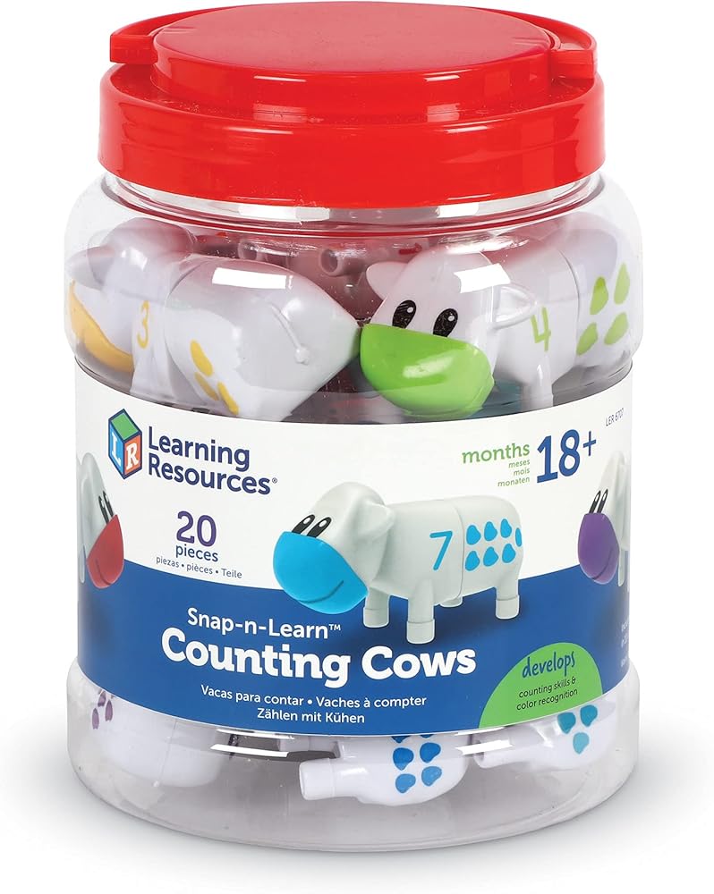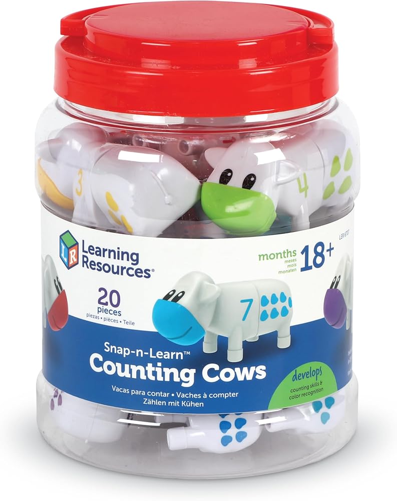 مجموعة ألعاب عد الأبقار Snap-n-Learn من Learning Resources، تطور التعرف على الألوان، مجموعة العد والفرز، حيوانات المزرعة، 20 قطعة، للأعمار من 18 شهرًا فما فوق