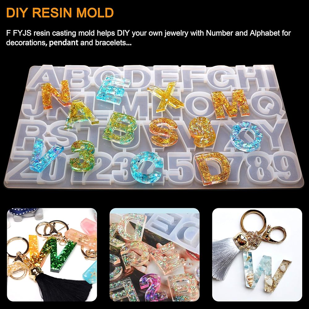 اف اف اف جيه اس قوالب راتنج على شكل حروف للخلف، قوالب سيليكون على شكل ارقام ابجدية للراتنج، قوالب ايبوكسي لصنع سلسلة المفاتيح والمجوهرات، مجموعة قوالب صب كيك السكر بنفسك