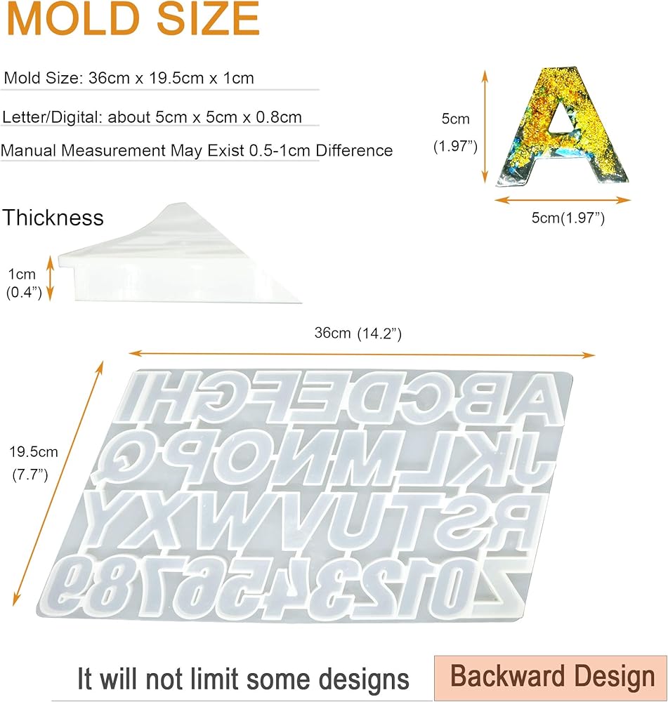 سهلة الاستخدام: مقاس قوالب السيليكون على شكل حروف: الطول × العرض × الارتفاع: 36 × 19.5 × 1 سم (14.2 × 7.7 × 0.4 انش). فقط قم بلف قوالب الصب التي تصنعها بنفسك لدفع القلادة للخارج بعد تصلب المادة