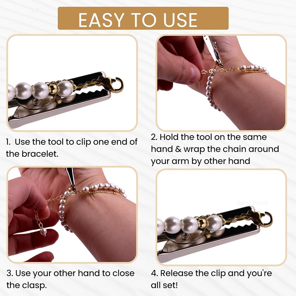 سهل الاستخدام: تم تصميم مساعد مشبك المجوهرات هذا لسهولة الاستخدام. فهو يحمل المشبك بشكل آمن، مما يسمح لك بلف السوار حول معصمك بسهولة وربطه بسرعة لتوفير وقتك الثمين.
