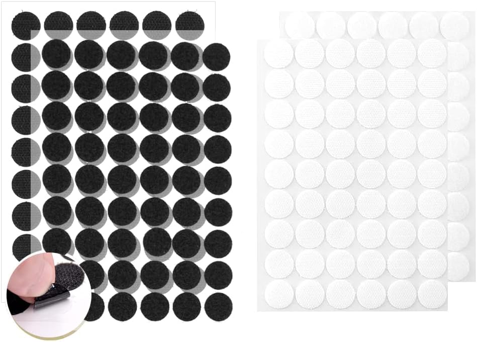 نقاط ذاتية اللصق، 108 زوجًا من نقاط الخطاف والحلقة بقطر 0.59 بوصة مع نقاط لاصقة مقاومة للماء، لاصق قوي لمستلزمات ديكورات العام الجديد، نقاط صمغ للفصول الدراسية والمكتب والمنزل باللونين الأبيض والأسود