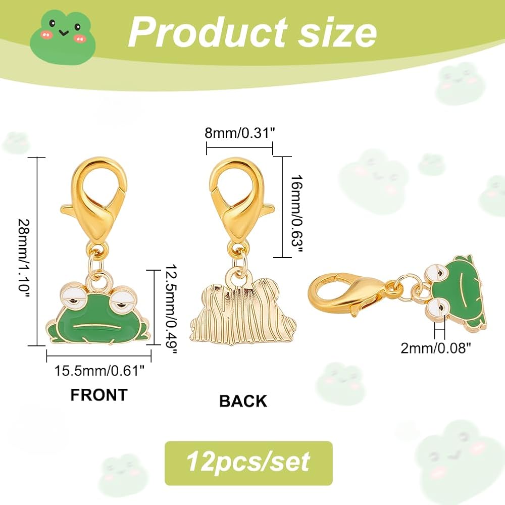 • ما تحصل عليه: 12 قطعة من أقلام غرز الضفدع الأخضر. الطول الإجمالي حوالي 1.1 بوصة (28 مم)، القلادة: 12.5 × 15.5 × 2 مم/0.5 × 0.6 × 0.08 بوصة، كمية كافية وحجم مناسب لتلبية احتياجاتك المختلفة في صناعة المجوهرات.