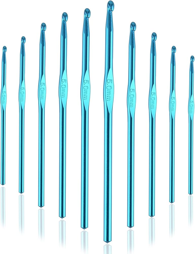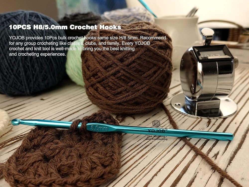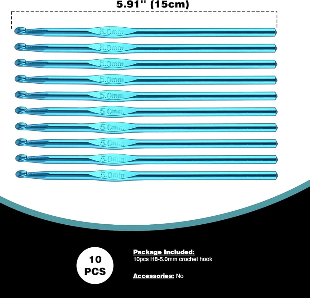 YOJOB 10 عبوات مقاس H / 5 مم خطافات كروشيه للمبتدئين أو الخبراء، خطاف كروشيه 5 مم رائع لمجموعة الحياكة مثل الفصول الدراسية والنوادي والعائلة (الألومنيوم الأزرق)