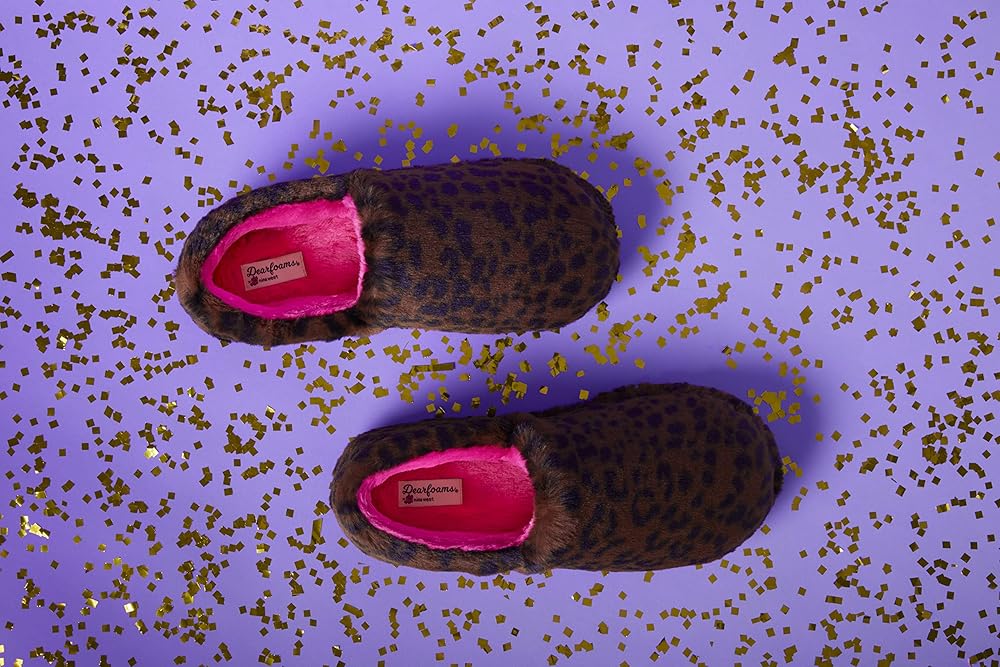 Embrace the freedom to express yourself with our new leopard print closed back slippers inspired by Nina West! Machine washable materials help these extra-furry slippers stay fresh and last longer, while DF Adapt keeps your feet cozy and dry. Best of all, memory foam insoles promise unbeatable underfoot comfort.