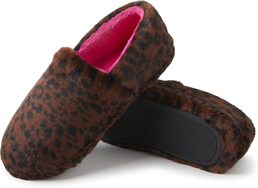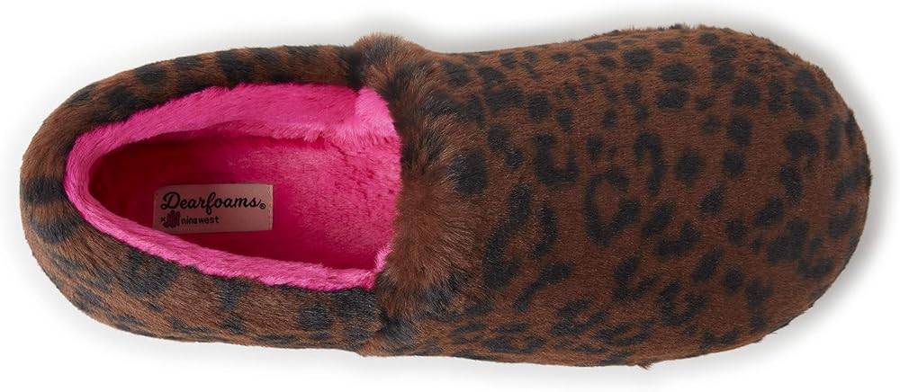 Dearfoams للجنسين Nina West طباعة الفهد فروي مغلق من الخلف مع شبشب بمقاسات شاملة، 9-10 US للسيدات