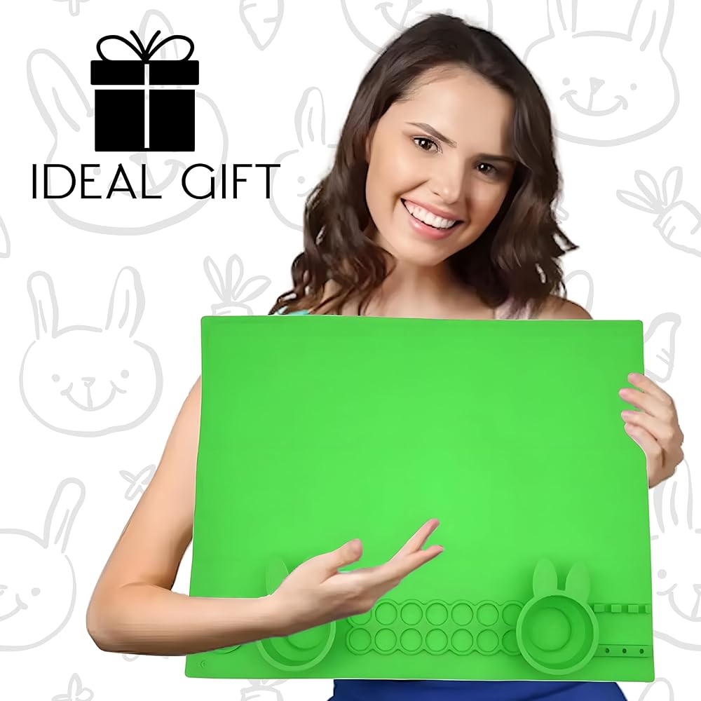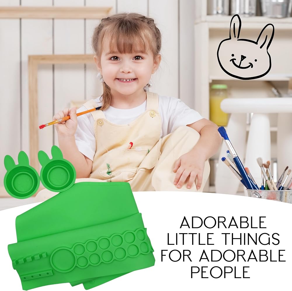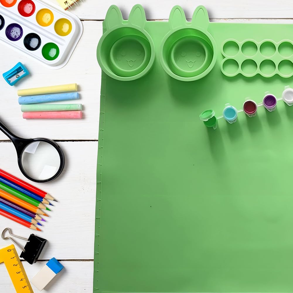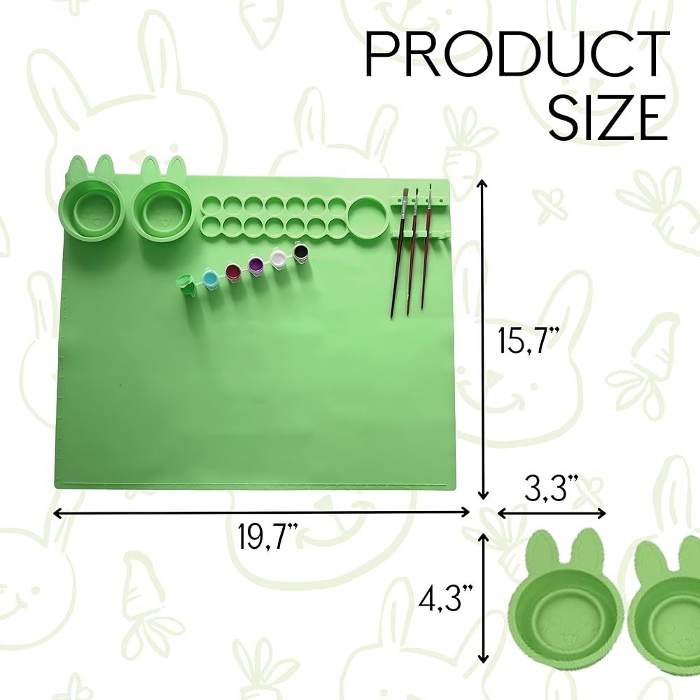 تتميز سجادة الرسم المصنوعة من السيليكون مقاس 15.74 × 19.68 بوصة للأطفال بحجم وسمك مثاليين - تساعد سجادات الطلاء للأطفال على الاحتفاظ بألوان متعددة بشكل منفصل. يبلغ مقاس كل كوب على شكل أرنب 8.89 سم × 11.43 سم، واستخدام كوبين أكثر ملاءمة من استخدام كوب واحد فقط.