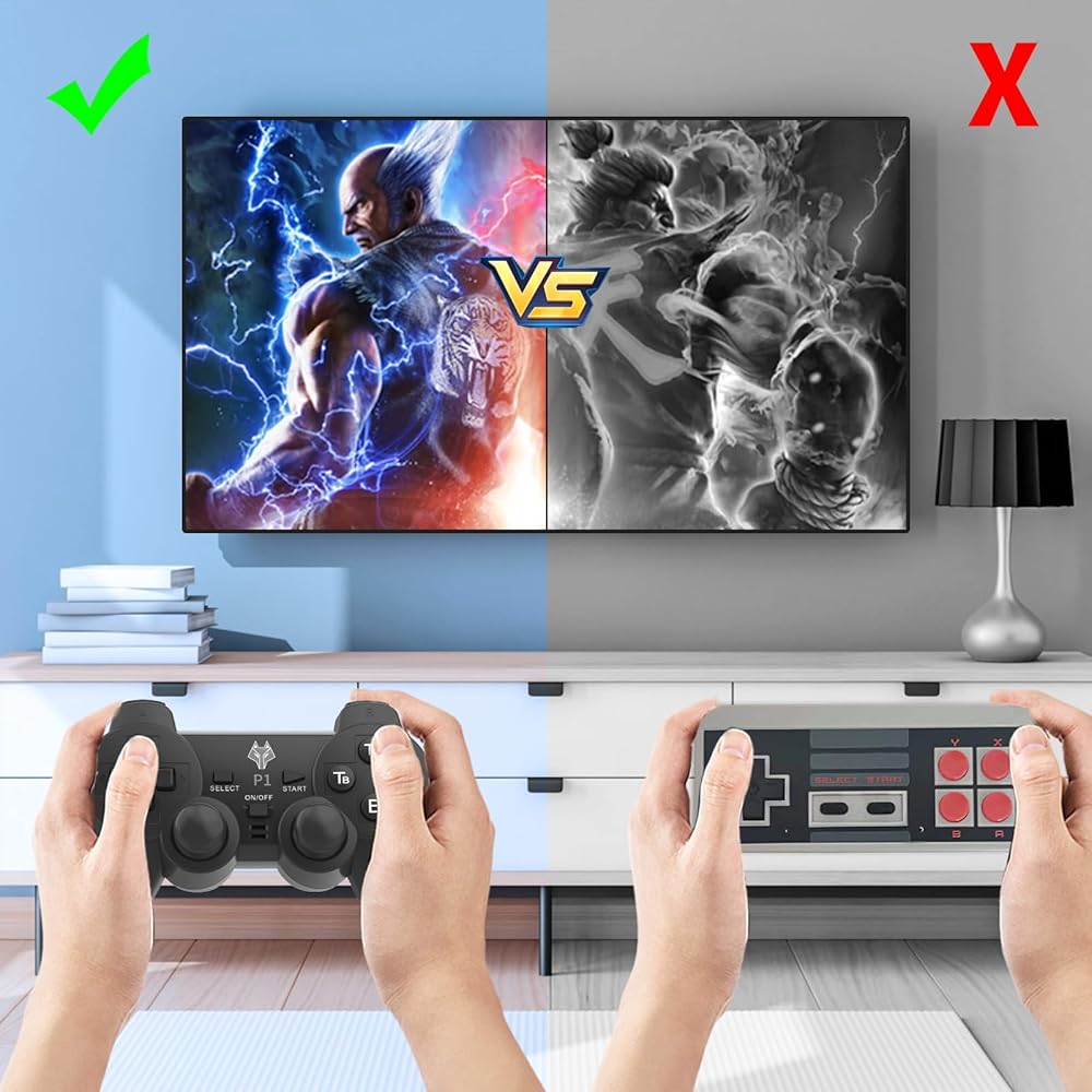 🎮وحدات تحكم لاسلكية مزدوجة 2.4 جيجا هرتز: استمتع باتصال لاسلكي سلس مع وحدات التحكم اللاسلكية المضمنة 2.4 جيجا هرتز. العب مع صديق وانغمس في متعة الألعاب القديمة.