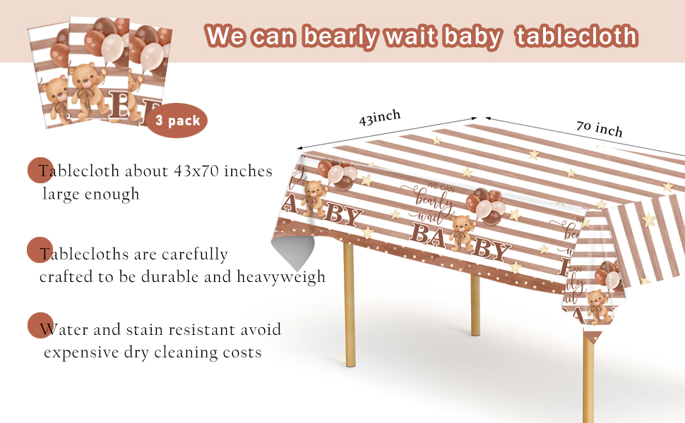 استمتع بوقت حفلة أوه بيبي: يمكن أن يوفر لك غطاء الطاولة القابل للاستعمال مرة واحدة الوقت لإعداد حفلة عيد ميلاد بطابع دب أو عشاء استقبال المولود. لا داعي للقلق بشأن تساقط الزيت على الطاولة، ولا داعي للقلق بشأن تنظيف الطاولة بعد العشاء. استمتع بالحفلة مع عائلتك
