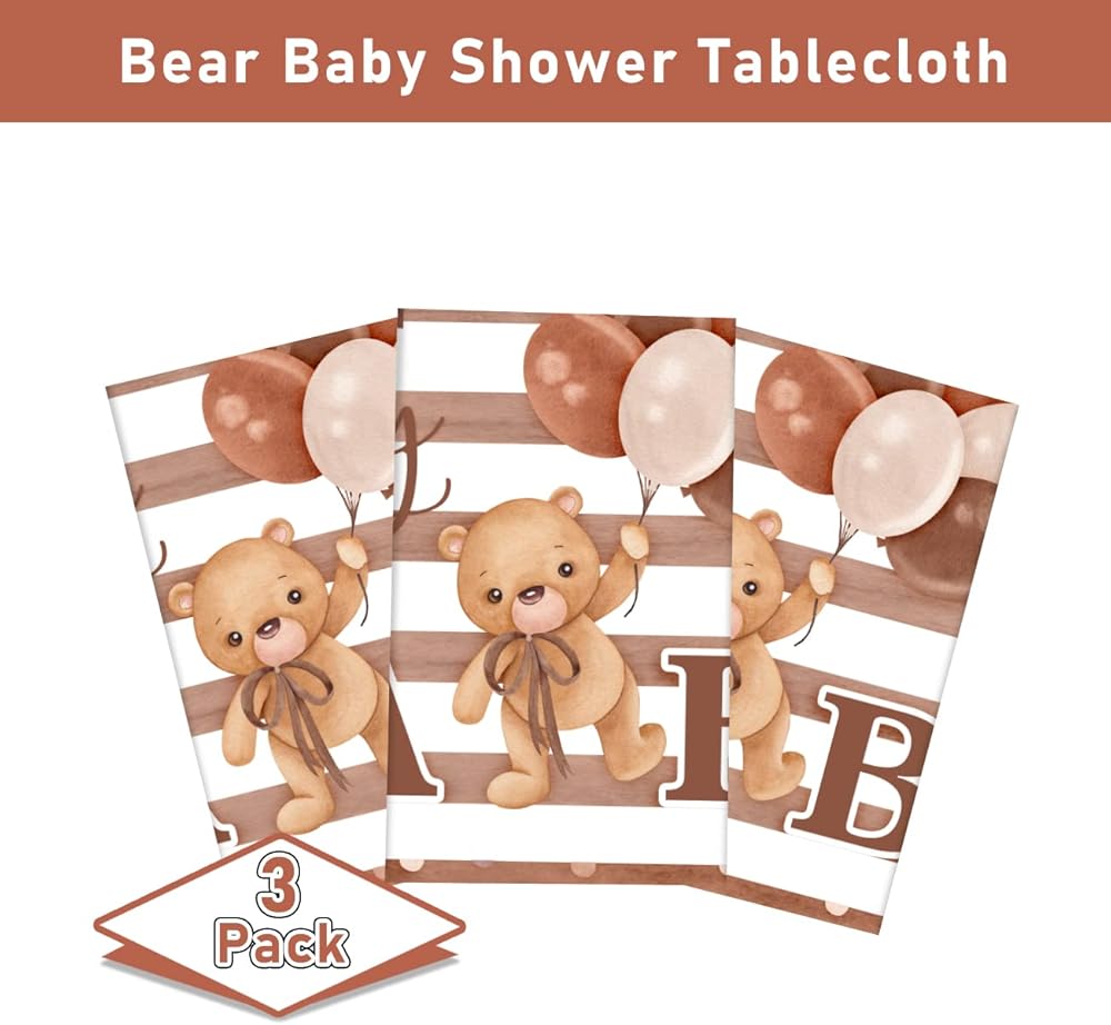 ما الذي ستحصل عليه: 3 عبوات من البلاستيك المستطيل مقاس 70 × 43 انش بتصميم دب تيدي بير لتزيين حفلات استقبال المولود الجديد ومفارش المائدة
