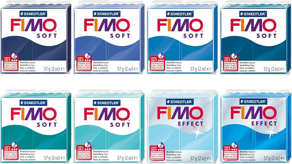 فيمو صلصال تشكيل فرن بوليمر سوفت اند ايفكت - 57 جرام - مجموعة من 8 قطع - درجات زرقاء