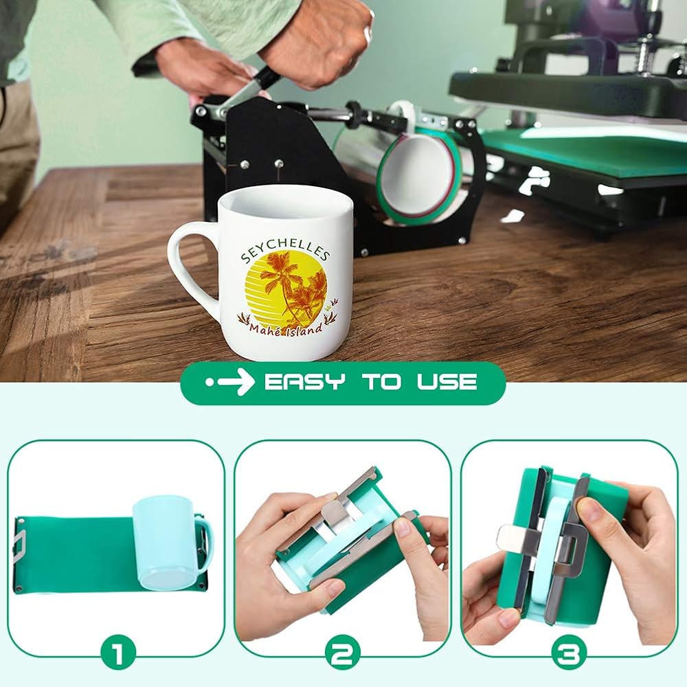 تحتاج فقط إلى إغلاق غلاف الكوب المصنوع من السيليكون ثلاثي الأبعاد على الكوب الخاص بك ثم تثبيت الزر المعدني، التركيب بسيط للغاية ويمكنه تثبيت الكوب بشكل فعال أثناء الطباعة، سهل التركيب والاستبدال في ثوانٍ، إنه مشبك جميل وأداة يدوية لنقل التسامي.