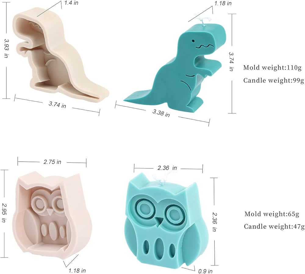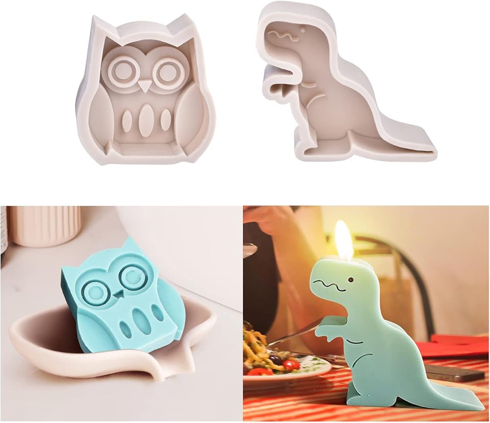 قطعتان من قوالب الشموع لصنع الشموع، قوالب شموع من السيليكون على شكل ديناصور لطين الشمع الجص، قالب الصابون، ديكور المنزل على شكل بومة، قوالب إيبوكسي من الراتنج