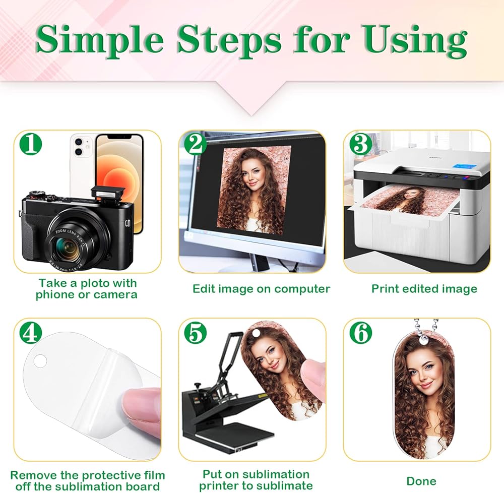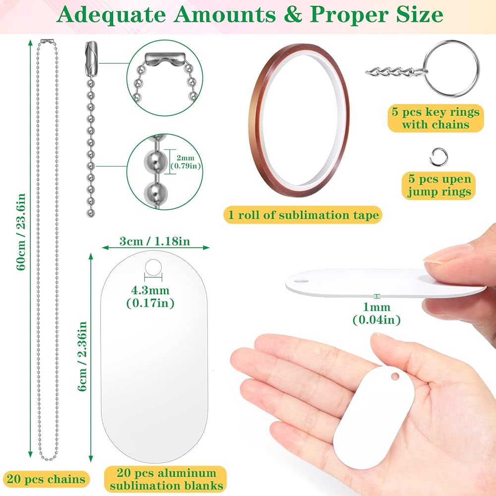 سهلة التصعيد - الفراغات الحرارية مطبوعة على الوجهين، فهي سهلة الفرعية وسهلة لمهاجمة جزء السلسلة، عندما تقوم بصنع سلسلة المفاتيح بالتسامي، يرجى العقل أن كومبو 356 درجة فهرنهايت لمدة 50 ثانية يمكن أن يمنحك لونًا مشبعًا، فهو يناسب أنواع وأنماط مختلفة من الفراغات التسامي. نصائح ودية: تأكد من تقشير الطبقة البلاستيكية الواقية قبل التسامي.