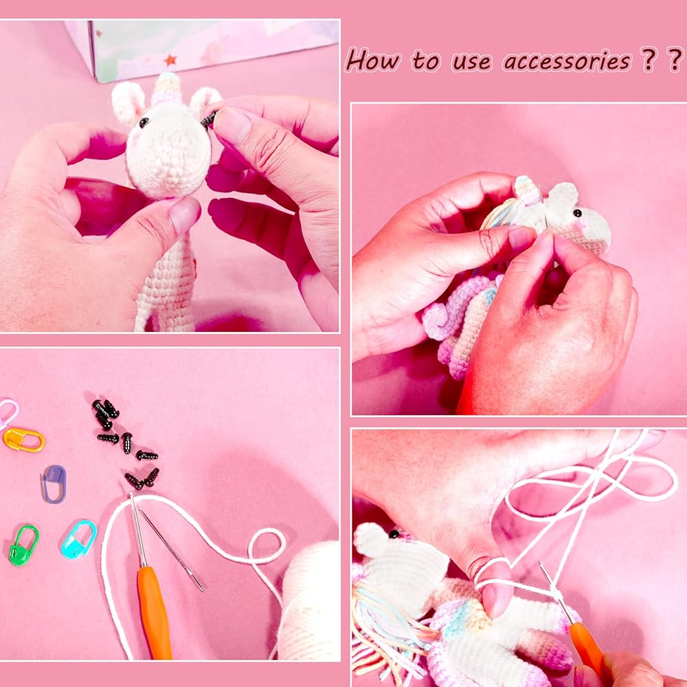 • Easy to Learn - There is a detailed manual instructions and and easy-to-follow step and step videos, even the starter of the crochet kit can quickly grasp the skills, improving their concentration and hands-on abilities. The crochet parts of each unicorn's body are separate and each section has detailed instructions for disassembling and crocheting accessories.