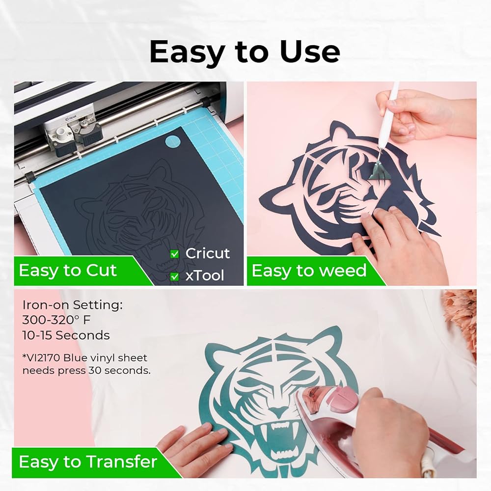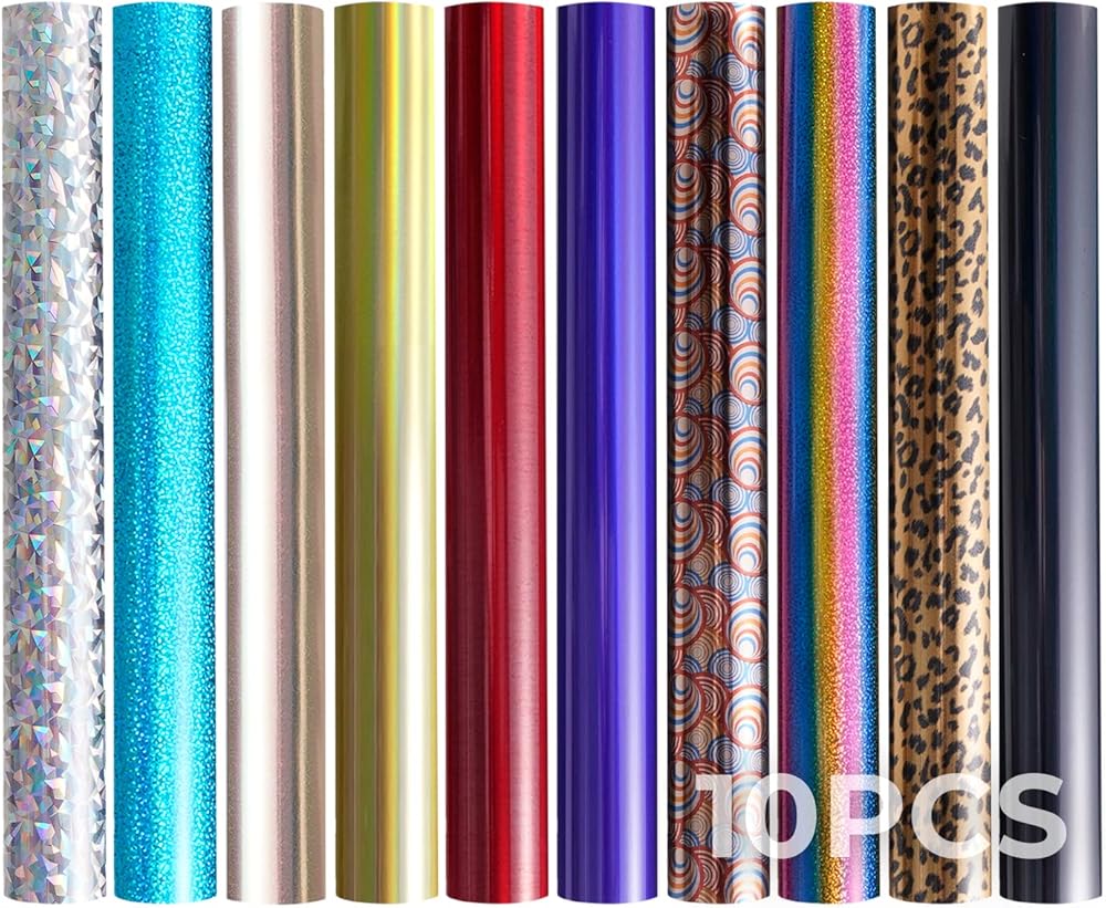 حزمة فينيل ناقل للحرارة من اتش تي في. عبوة من 10 أوراق، 12 انش × 10 انش تي شيرت فينيل قابل للكي و10 ألوان مختلفة من الفينيل لتصنعها بنفسك. يعمل مع كريكوت.