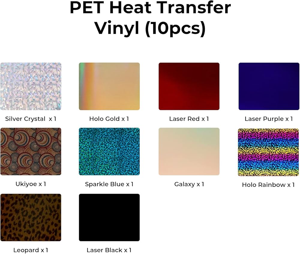 حزمة فينيل ناقل للحرارة من اتش تي في: 10 عبوات مقاس 12 انش × 10 انش من الفينيل تثبت بالكي على التيشيرتات، 10 اوراق الوان متنوعة، فينيل قابل للكي لاقمشة التيشيرتات التي تصنعها بنفسك
