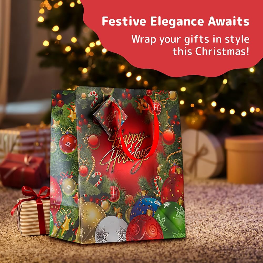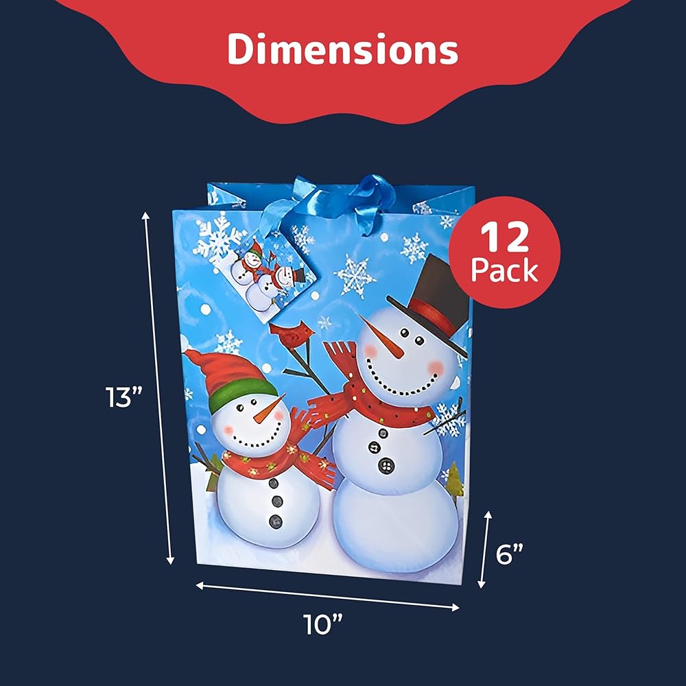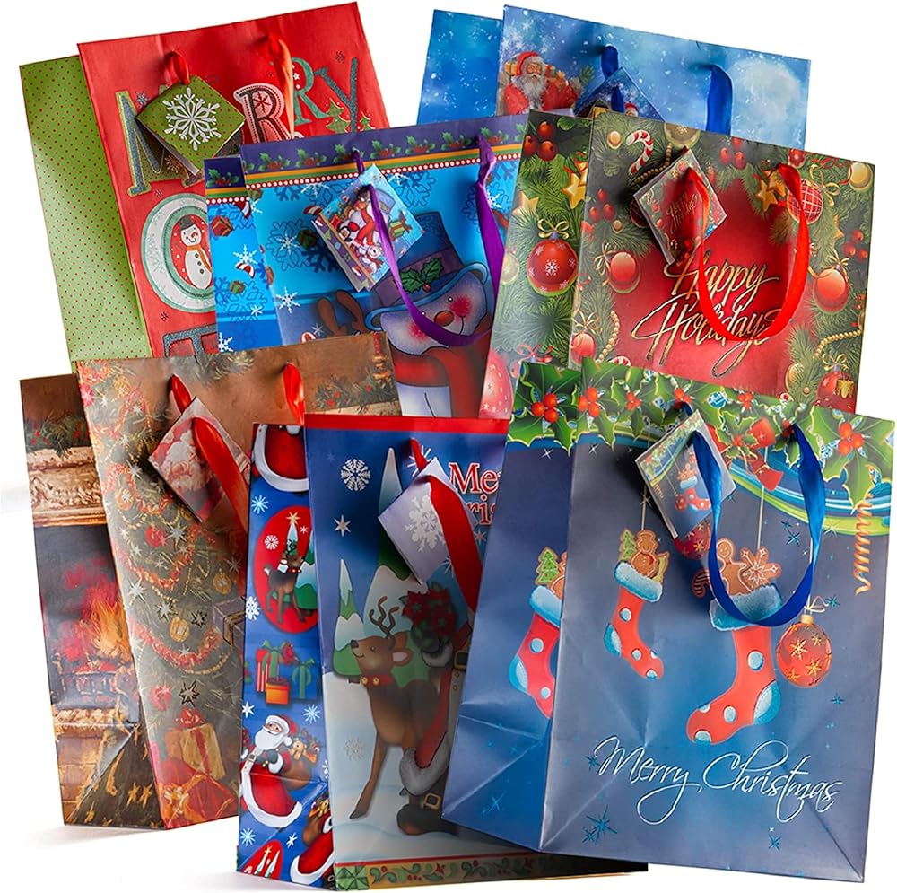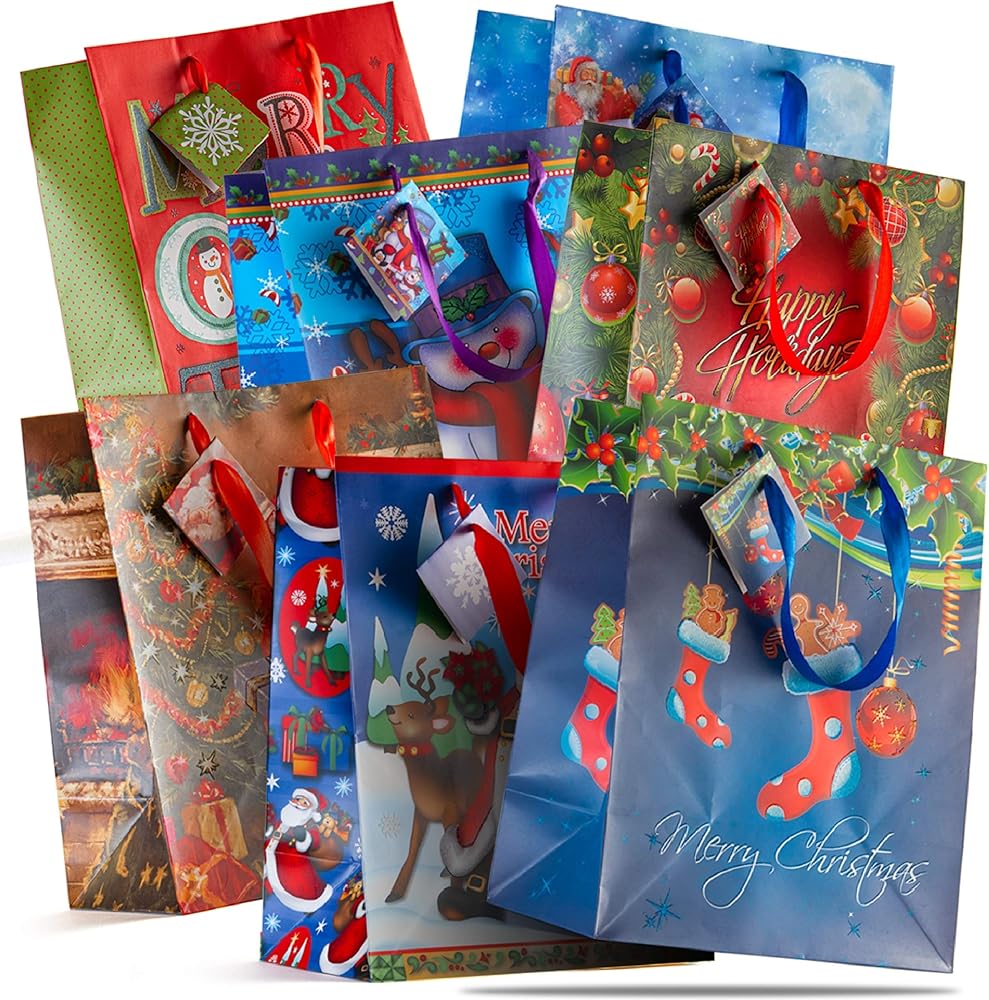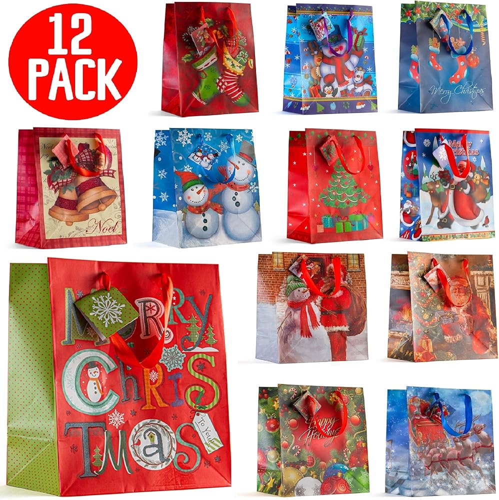 حقائب هدايا كبيرة مقاس 13 بوصة - 12 حقيبة هدايا أنيقة متنوعة لعيد الميلاد مع بطاقات هدايا منسقة (12 حقيبة مختلفة). أفضل وبأسعار معقولة من الحقائب الصغيرة والمتوسطة الأخرى