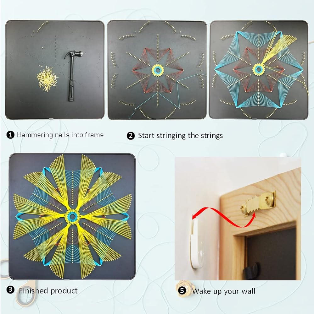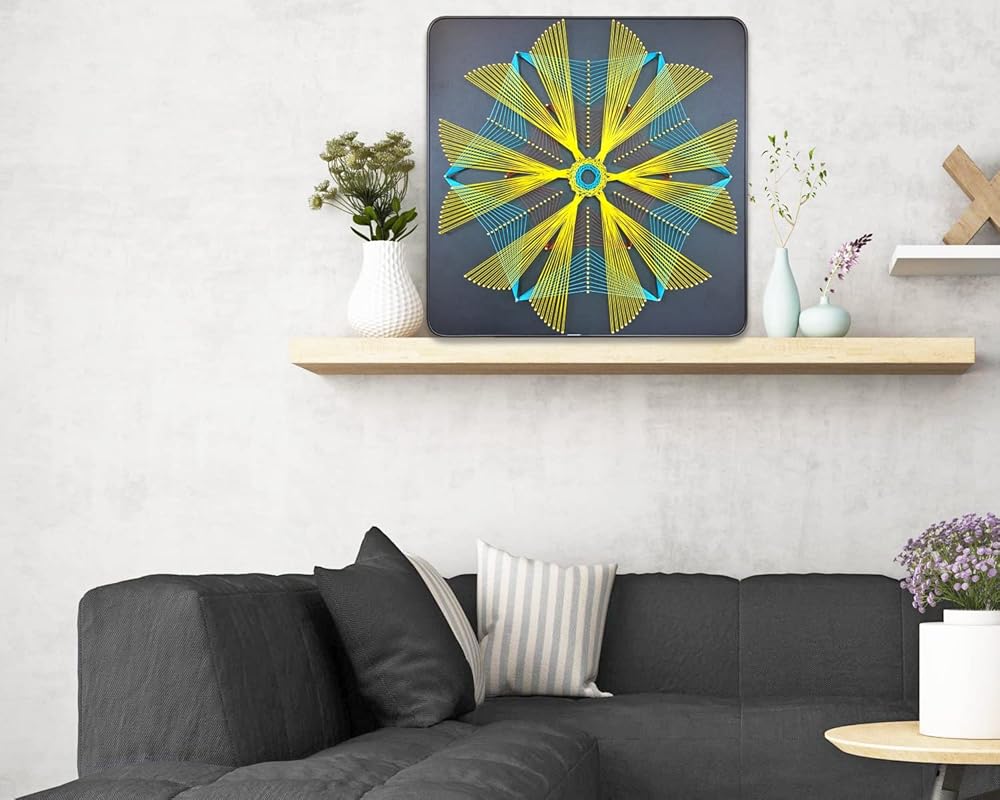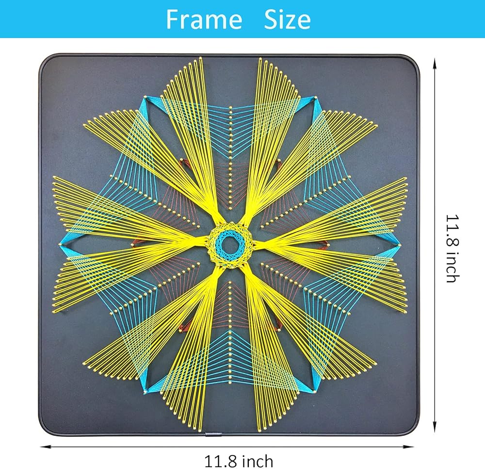 مجموعة فن الخيوط للمبتدئين البالغين - مجموعة الحرف اليدوية للبالغين - فن خيط يمكنك تركيبه بنفسك مع جميع الاكسسوارات والاطار الضرورية- ديكور حائط المنزل هدية فريدة من نوعها (أنماط هندسية، 11.8 انش ×