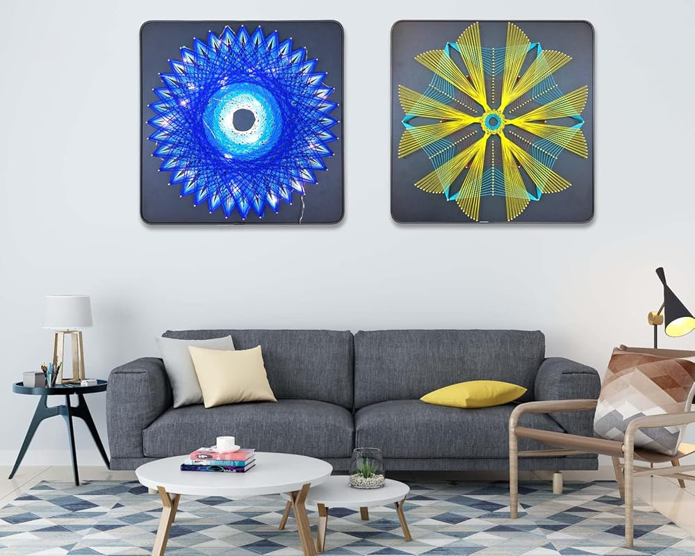 عندما تنتهي، فإن فن الخيط الفريد والجميل الذي صنعته بنفسك لعرضه بفخر في منزلك. هذا يعد خيارًا رائعًا لديكور المنزل في غرفة نومك أو غرفة الطفل أو غرفة المعيشة أو المطبخ أو الشرفة أو الرواق أو الحمام أو المكتب أو العار. كما أنها مثالية لصنع هدية مخصصة.