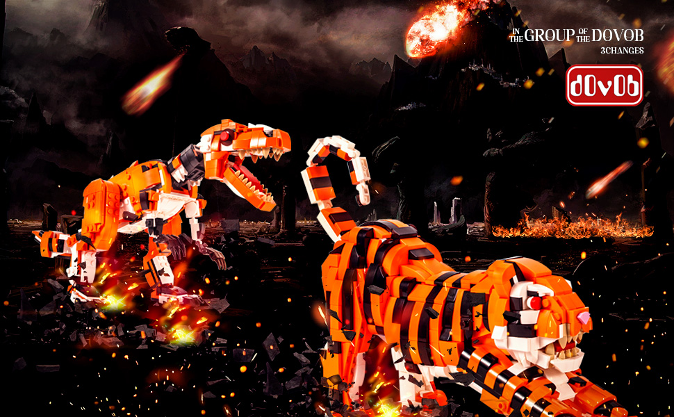 - 3 animal models in 1 set – dOvOb fans can enjoy endless adventures with this building set featuring tiger, dinosaur and Shark fish.