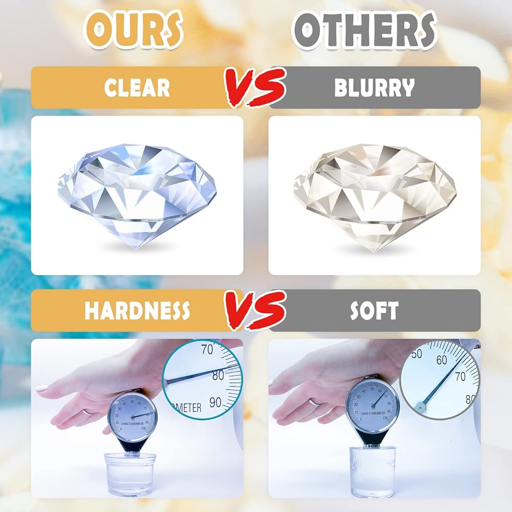 شفاف كريستالي وخالي من الفقاعات: راتنجات الإيبوكسي لدينا واضحة تمامًا ويضمن لمسة نهائية خالية من الفقاعات، مما يمنح عملك الفني مظهرًا احترافيًا ولامعًا. بمجرد معالجته بالكامل، يوفر راتنجات الإيبوكسي لدينا سطحًا مزخرفًا مشرقًا ومثاليًا غير أصفر، مقاومة درجات الحرارة العالية، ومقاومة للاهتراء. إنه مثالي لإنشاء عمل فني متين وطويل الأمد.