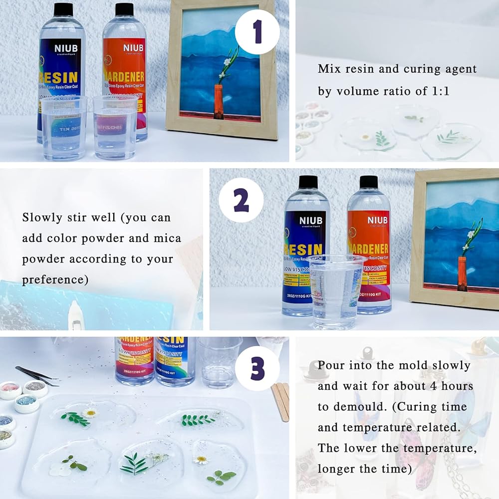 تركيبة جديدة عالية الجودة: راتنجات إيبوكسي NIUB الخاصة بنا مصنوعة من تركيبة جديدة عالية الجودة تضمن نتائج ممتازة في كل مرة. راتنجات الإيبوكسي الخاصة بنا آمنة وغير سامة، مما يجعلها مناسبة للاستخدام في أي بيئة. ومع ذلك، نوصي باستخدامه في منطقة جيدة التهوية للحصول على أفضل النتائج.