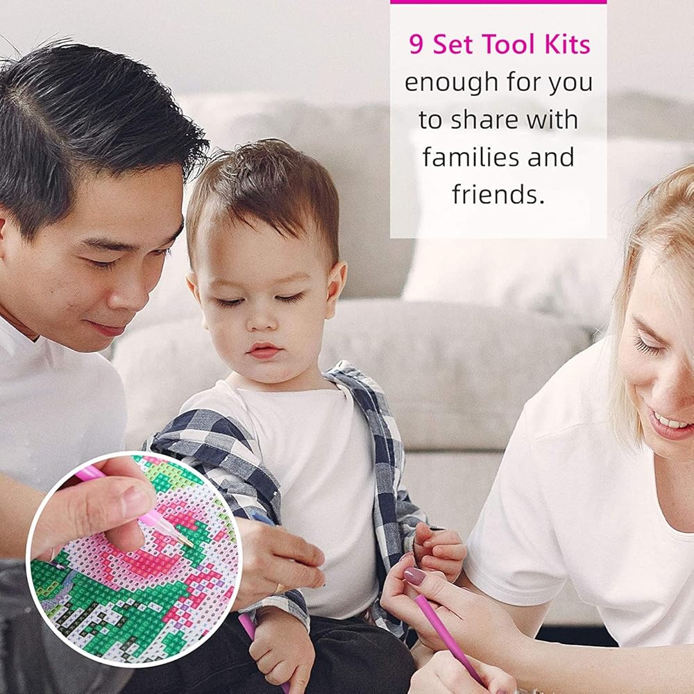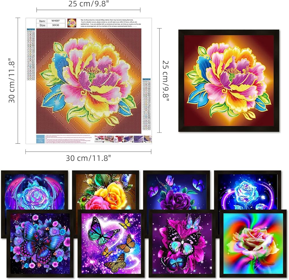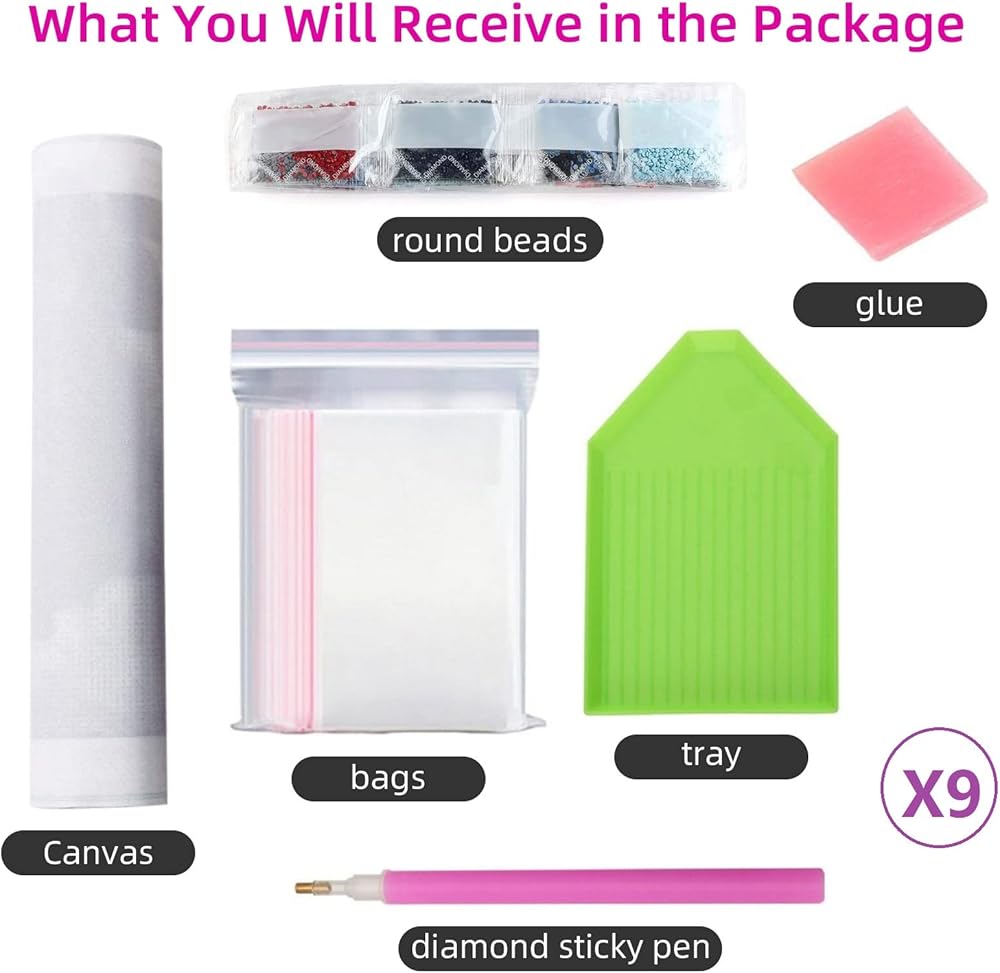 【محتويات العبوة】 ستحصل على 9 مجموعات من اللوحات الماسية التي تصنعها بنفسك تتضمن أدوات الملحقات الضرورية (قماش + ألماس دائري كامل + صينية + قلم حفر مدبب + غراء)، مقاس اللوحة الماسية التي تصنعها بنفسك 11.8 انش × 11.8 انش.