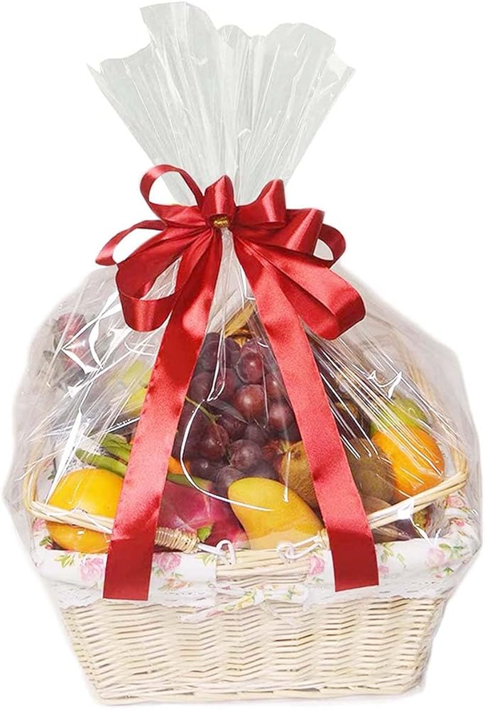 THICK & DURABLE - These basket bags are made from high-quality cellophane that is 2.3 mils thick to prevent tearing while wrapping the basket or gift.