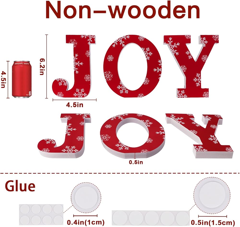 تشمل العبوة: 3 حروف كبيرة "JOY" و8 مواد لاصقة. "J" بحجم 6 × 4.6 بوصة (الطول × العرض). "O" بحجم 6 × 5.1 بوصة (الطول × العرض). "Y" بحجم 6 × 5.4 بوصة (الطول × العرض). الحروف كبيرة بما يكفي لرؤيتها من مسافة بعيدة. حجم جيد كزينة لمواقد عيد الميلاد.