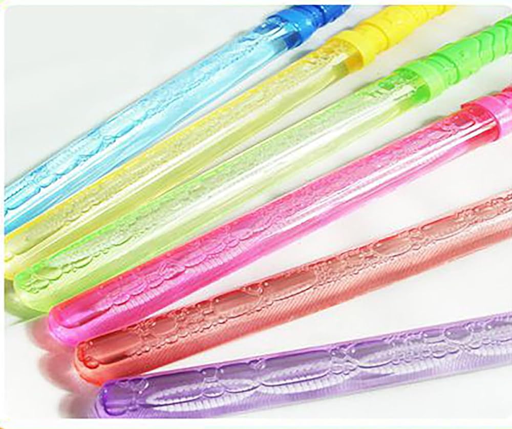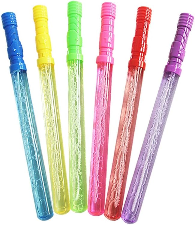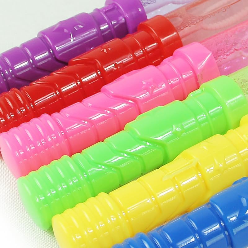 تحتوي كل مجموعة على ستة ألوان باللون الأصفر والأزرق والوردي والأخضر والبرتقالي والأحمر مقاس 14.6 بوصة وعصي فقاعات كبيرة بوزن 118 مل و12 عبوة من محلول الفقاعات المركز سعة 20 مل (0.7 أونصة سائلة)