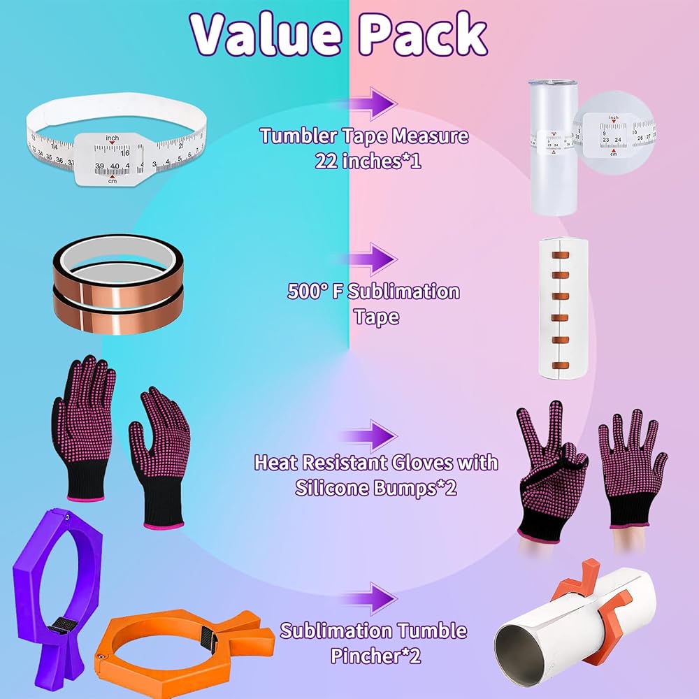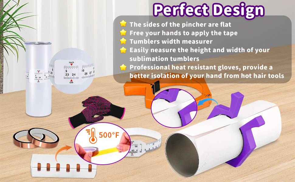 • 【Upgraded Pincher Kit】Package including tumblers pinchx 2, High Temperature Tape x 2, Tumblers Width Measurer x 1, Heat Resistant Glove x 2. Perfect Tool Set For Sublimation Tumblers 20 Oz Sublimation Blanks Tumblers Skinny Straight.