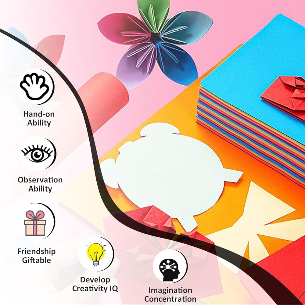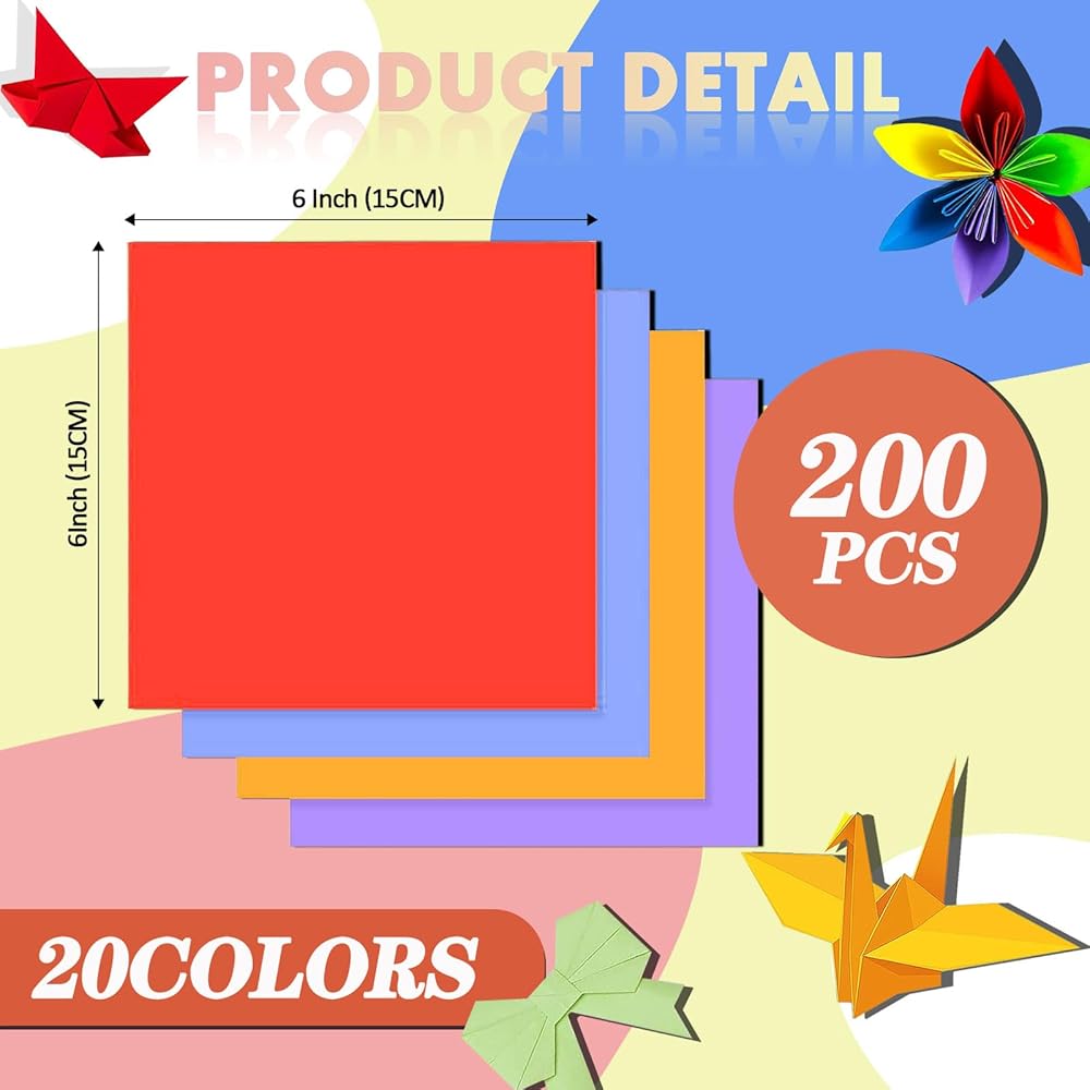 كل قطعة من ورق الأوريغامي المكون من 200 قطعة مقاس 6×6 مطبوعة بالألوان، لذا اجعل تصميم ورق الأوريغامي الخاص بك أكثر حيوية.