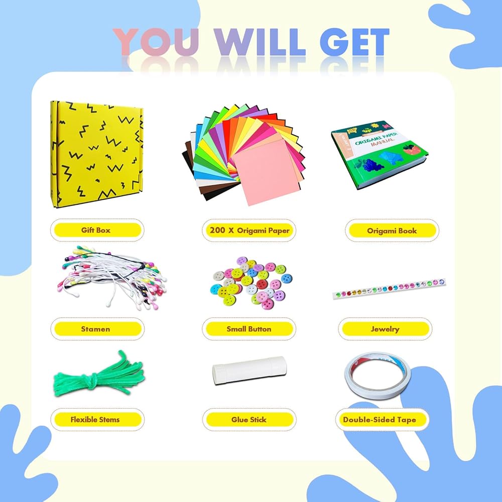 👍【أوراق أوريغامي مثالية مع ديكورات جذابة】يوجد 200 مجموعة ورق أوريغامي مربعة ملونة عالية الجودة قابلة للطي على الوجهين في 20 لونًا نابضًا بالحياة، و30 زرًا، و20 جوهرة، و10 سيقان مرنة والعديد من السداة/المدقات لزهور ورق أوريغامي. يمكن أن تساعد الديكورات لخلق فنون شخصية فريدة من نوعها. ورقة اوريغامي عيد الميلاد ورقة اوريغامي 6x6 حزمة ورق البناء متعددة الألوان، شرائط ورقة اوريغامي نجمة، ورقة اوريغامي ألوان جميلة ورقة اوريغامي على الوجهين اللون الملون السائبة