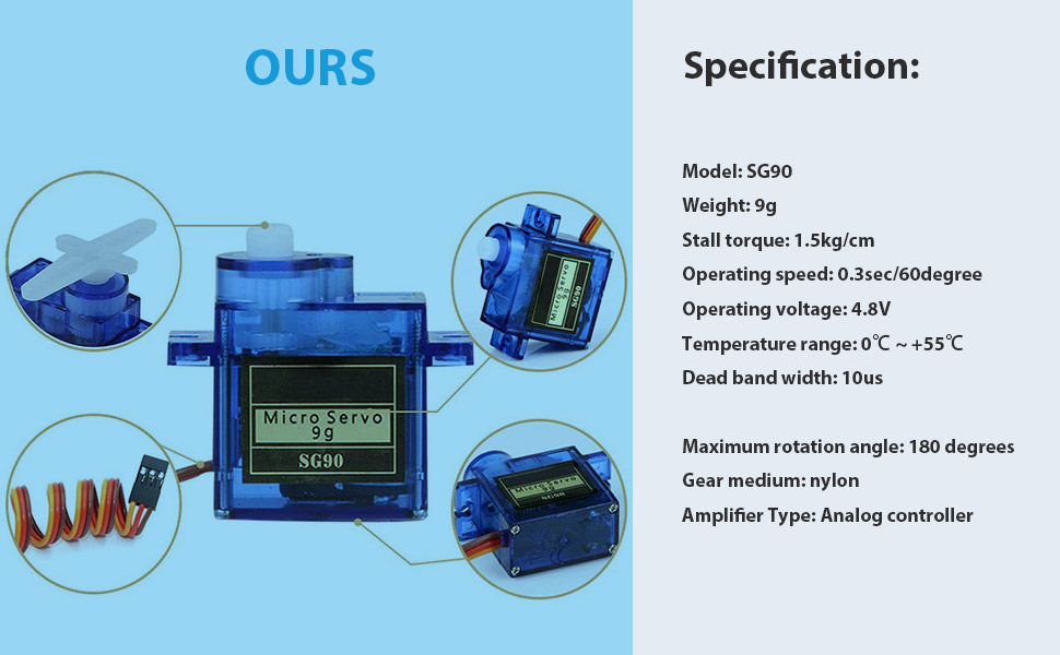 Application: Used for remote control helicopters, micro robot, robot arm and boats. Fit for ALL kinds of R/C Toys and also make electronics DIY compatible with Arduino, Raspberry Pi