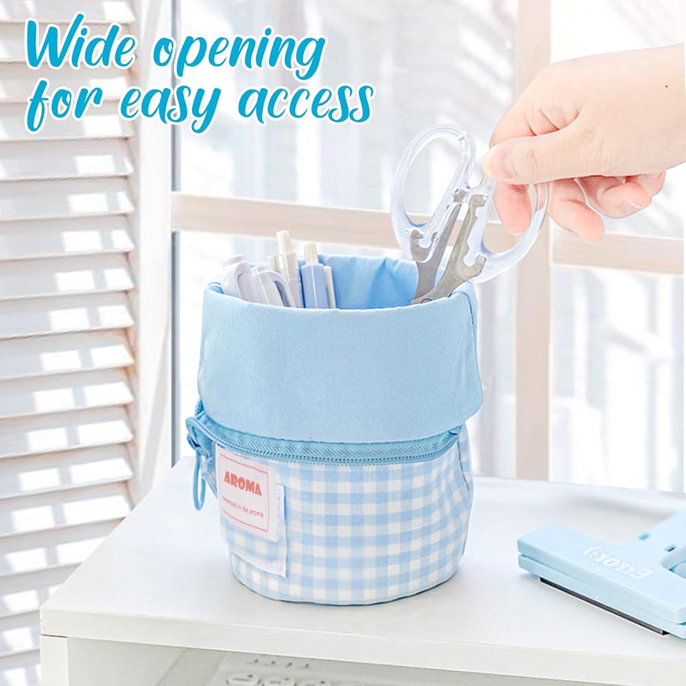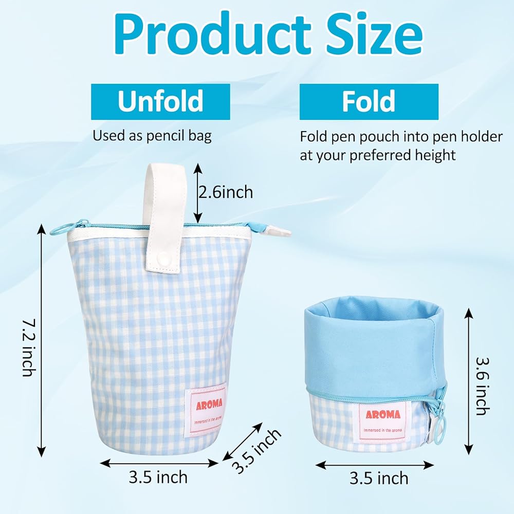 تصميم لطيف ورأسي: تتميز حافظة الأقلام الأنيقة والجذابة لدينا بنمط مربعات مبهج باللونين الأزرق والأبيض، مما يجعل مقلمة للأولاد ساحرة بشكل لا يقاوم. يضيف التصميم العمودي لمسة أنيقة إلى مكتبك أو حقيبتك، مما يجعل حافظة القلم إكسسوارًا أنيقًا مناسبًا لأي شخص المناسبة.عمر التقديم: 3 سنوات فما فوق.
