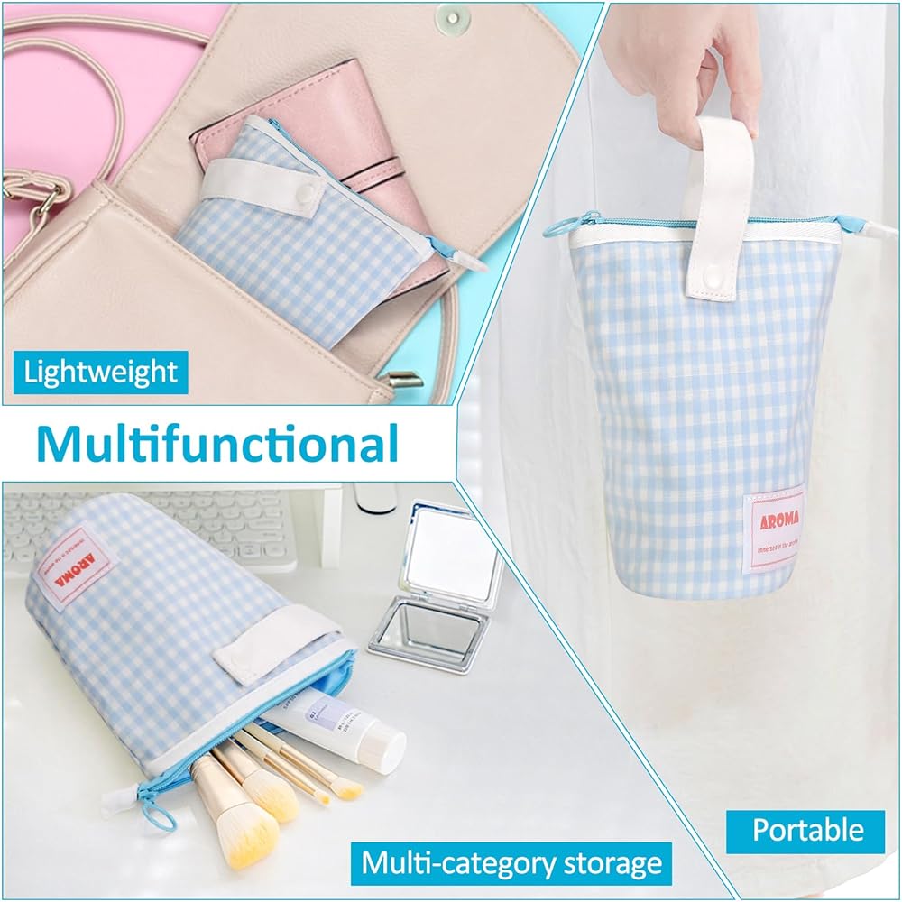 ممتازة ومتينة: حقيبة أقلام الرصاص القماشية ذات المربعات باللونين الأزرق والأبيض مصنوعة من مواد عالية الجودة، مما يضمن المتانة التي تدوم طويلاً. يتحمل القماش السميك التآكل والتمزق اليومي، ويحافظ على ملمس خفيف الوزن سهل التنظيف، ويمنع الغبار والخدوش بشكل فعال. حقيبة مقلمة بسحاب معدني قوي يضمن الفتح والإغلاق بسلاسة.